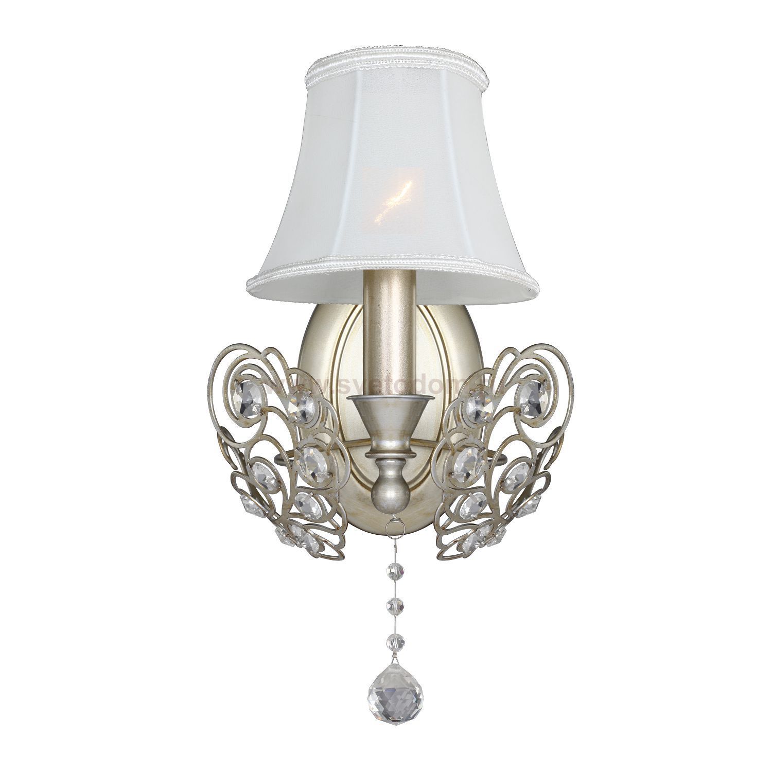 каркас окрашен в цвет античное серебро, абажуры из белой ткани, хрусталь высшего качества Комментарий