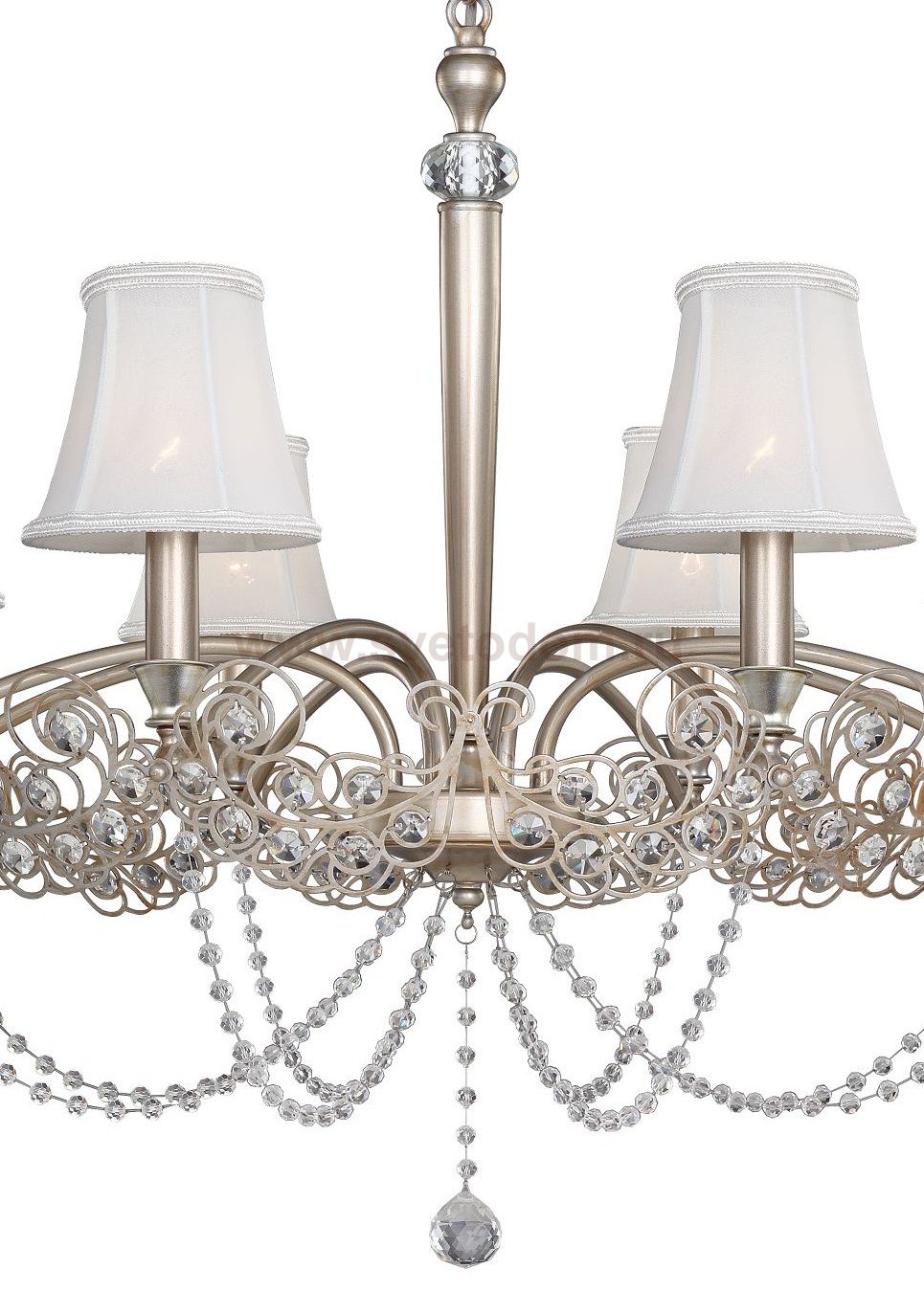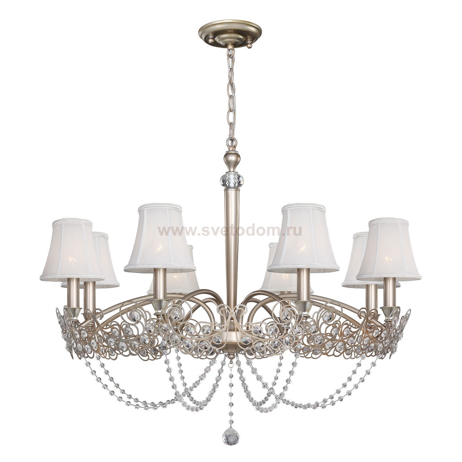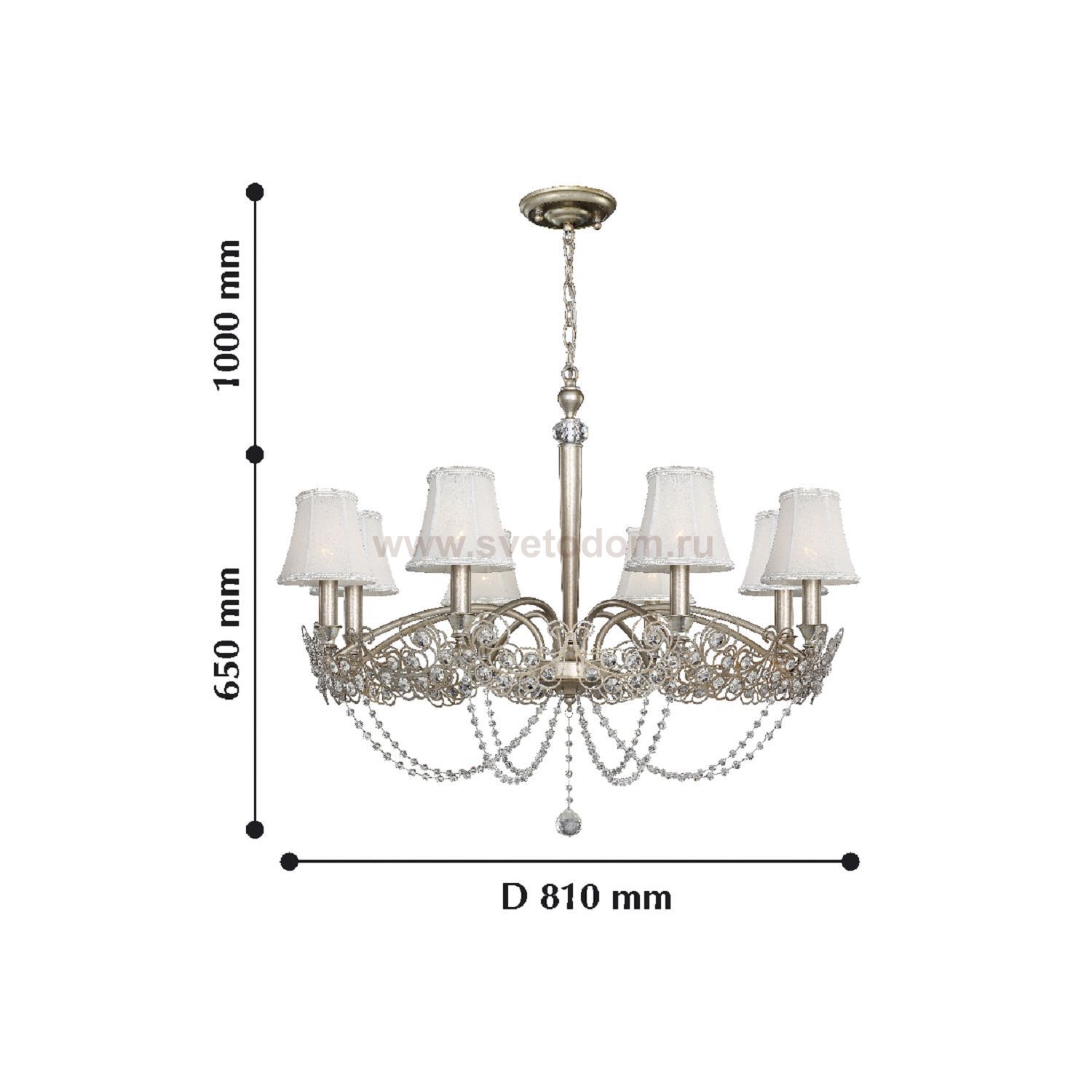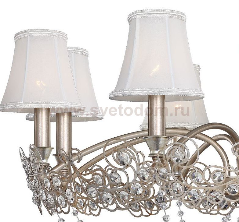 каркас окрашен в цвет античное серебро, абажуры из белой ткани, хрусталь высшего качества Комментарий