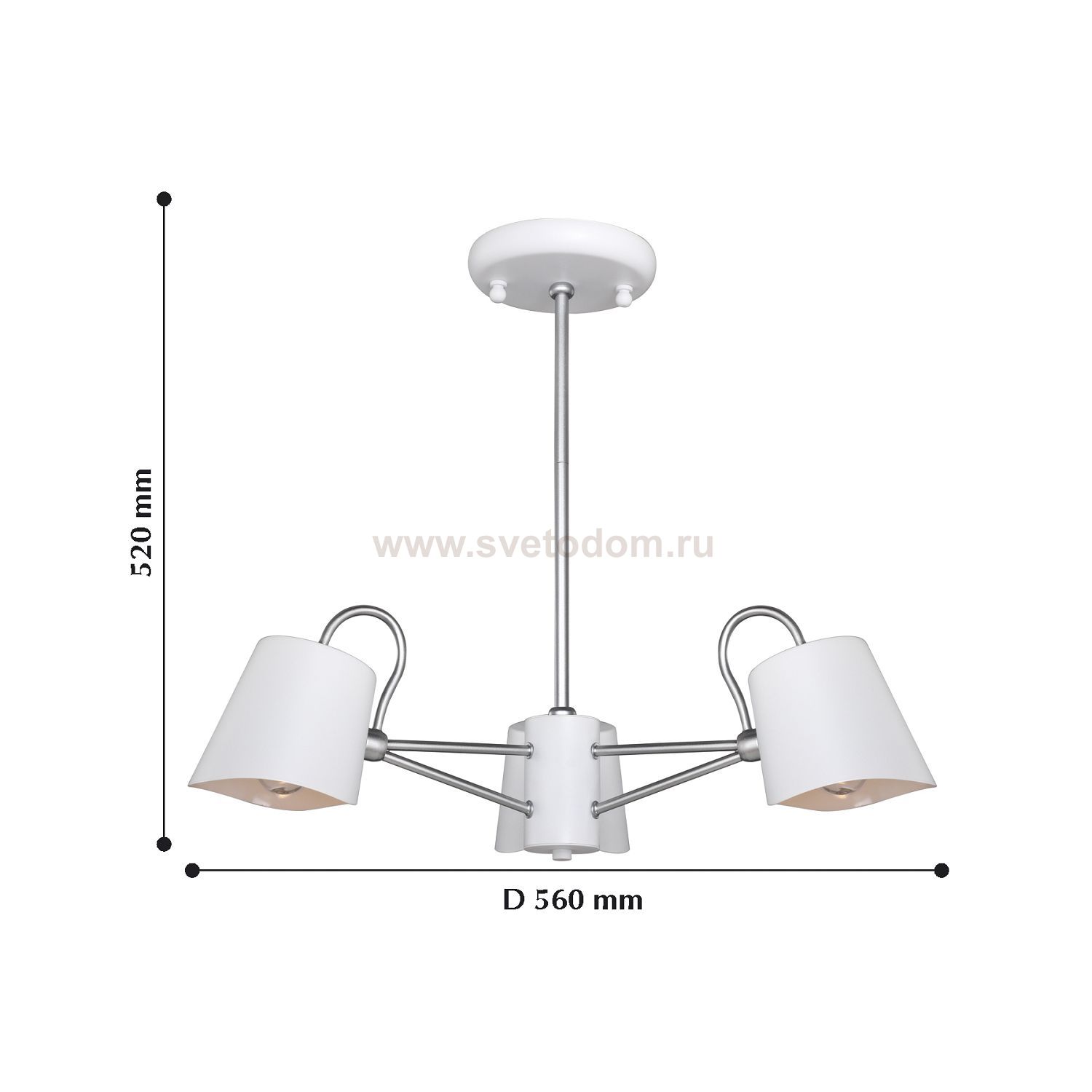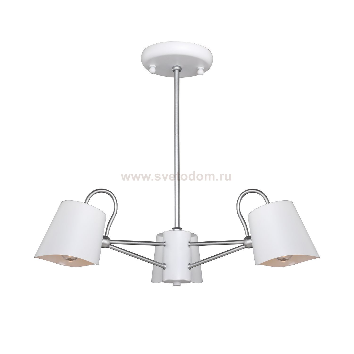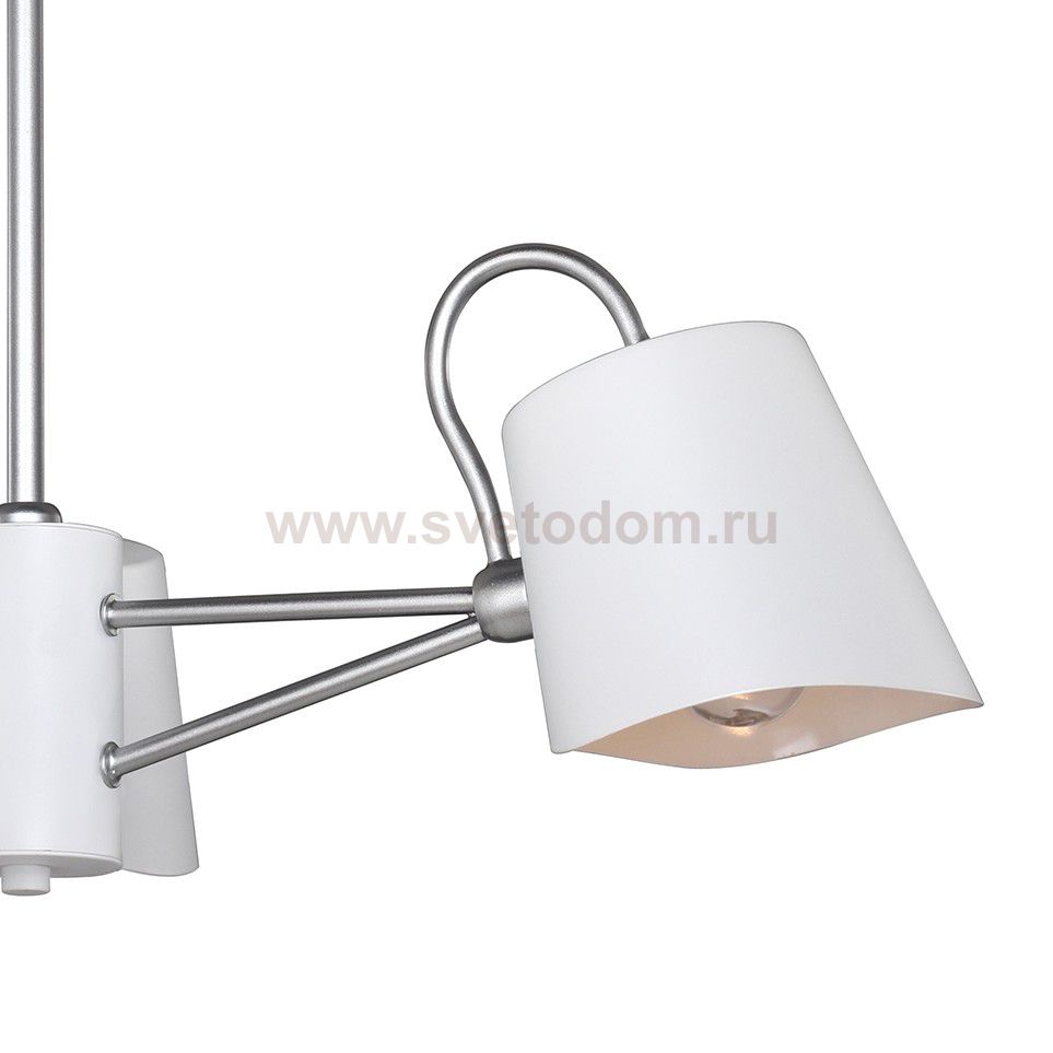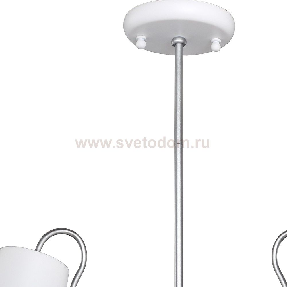 Высота люстр регулируется благодаря составной штанге. каркас окрашен в белый цвет с серебряными декоративными элементами. Материал плафона