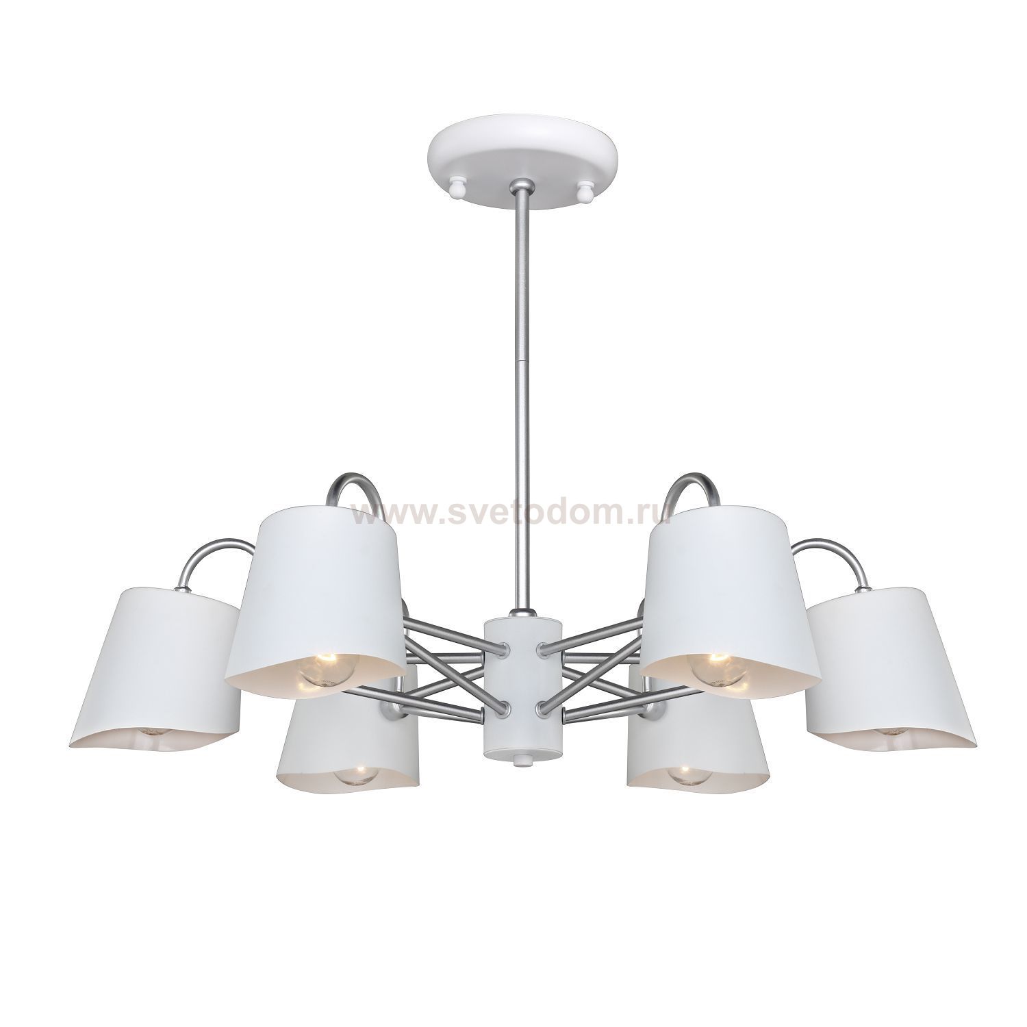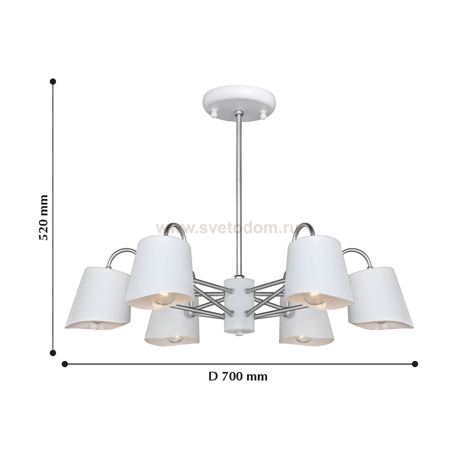 Высота люстр регулируется благодаря составной штанге. каркас окрашен в белый цвет с серебряными декоративными элементами. Материал плафона