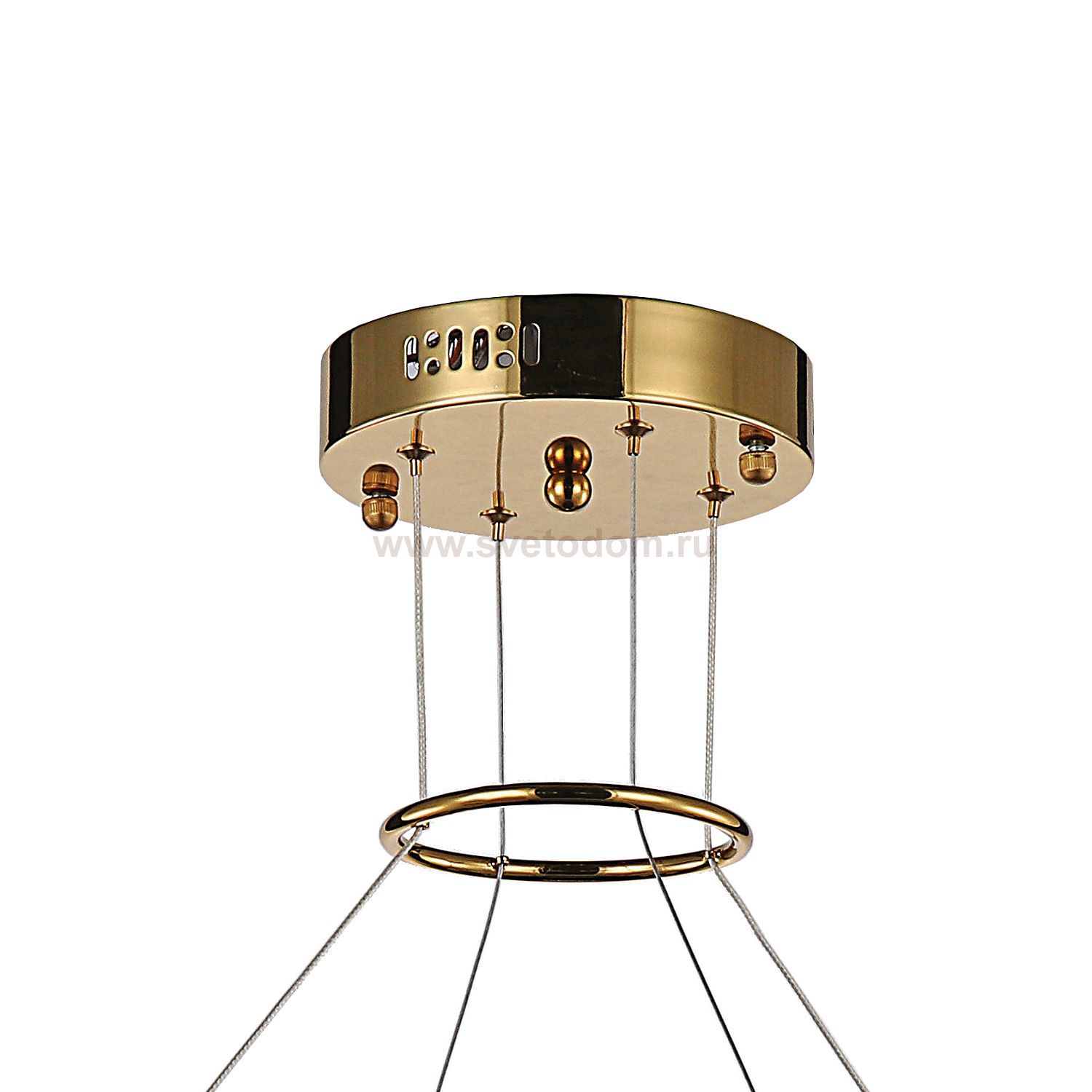 каркас светильника покрыт гальваникой цвета латуни, внутренние кольца окрашены в цвет кофе с молоком, рассеиватели LED из белого акрила Материал плафона