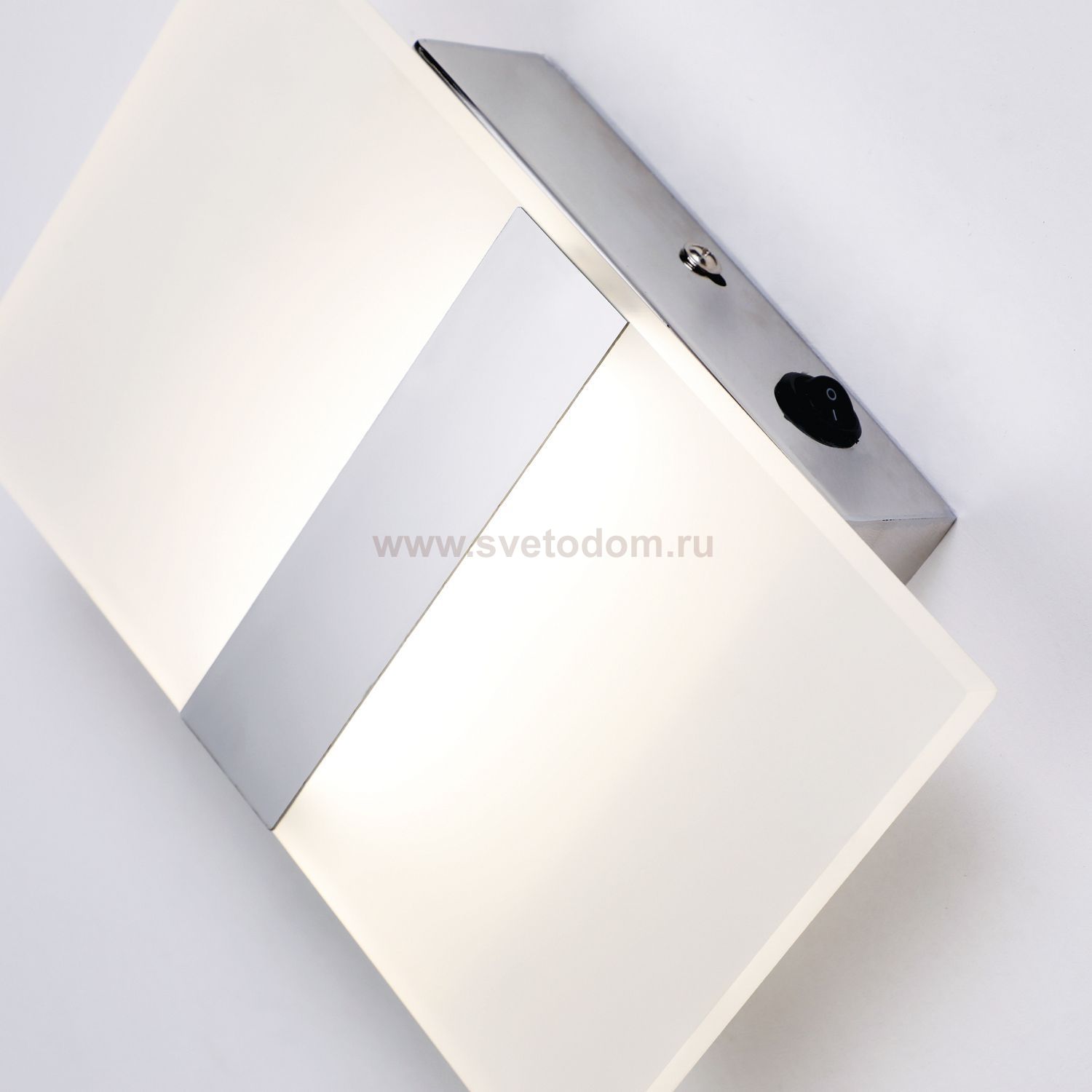 настенный светильник серебристого цвета, стекло полуматовое, выключатель Штрих-код