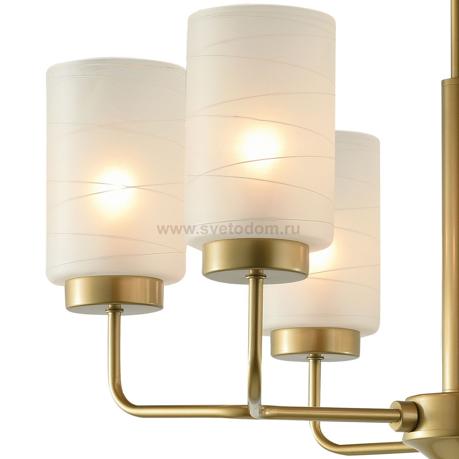 Traditio - коллекция светильников в современном стиле. Оригинальность коллекции заключается в раздвоенных рожках. Каркас окрашен в золотой цвет и оформлен плафонами из белого матового с тонкими линиями. Материал плафона