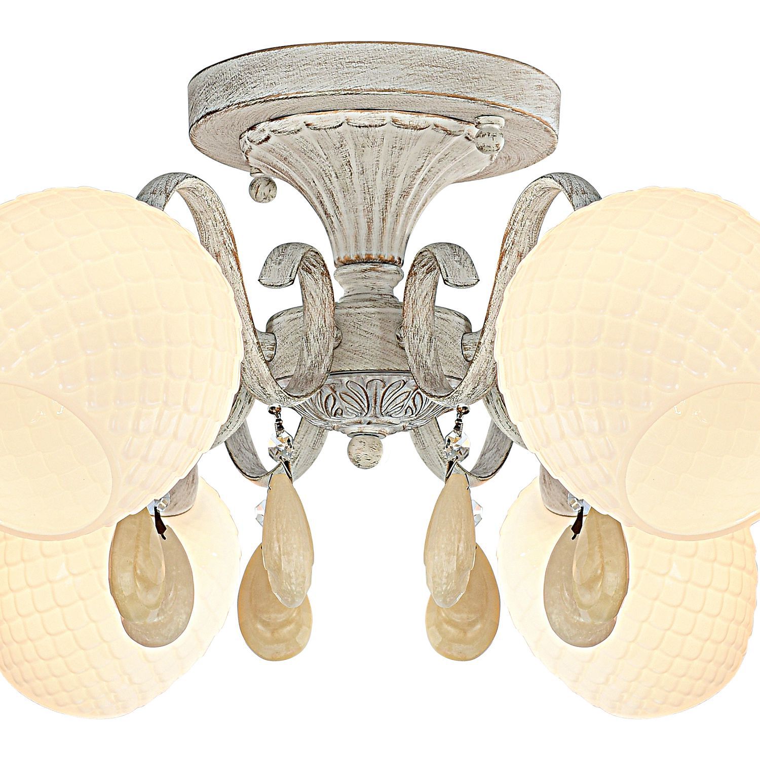 Классическая коллекция потолочных люстр Gemmas выполнена в белом цвете с золотой патиной и оформлена выдувными плафонами из молочного стекла с объемным графическим рисунком. Материал плафона