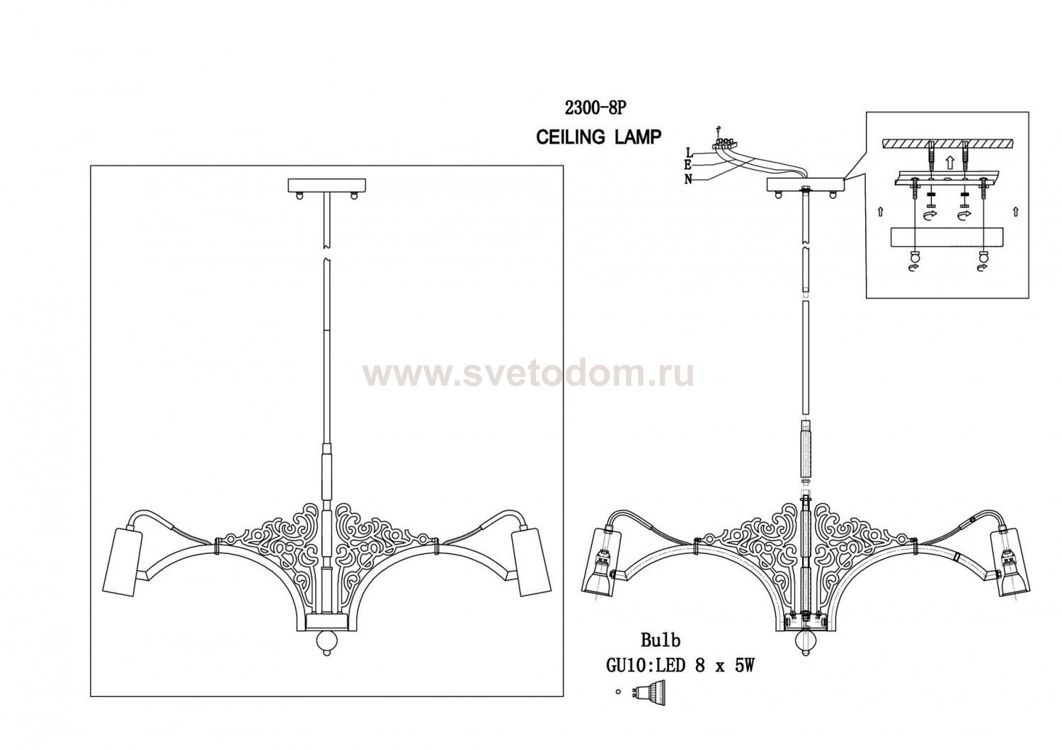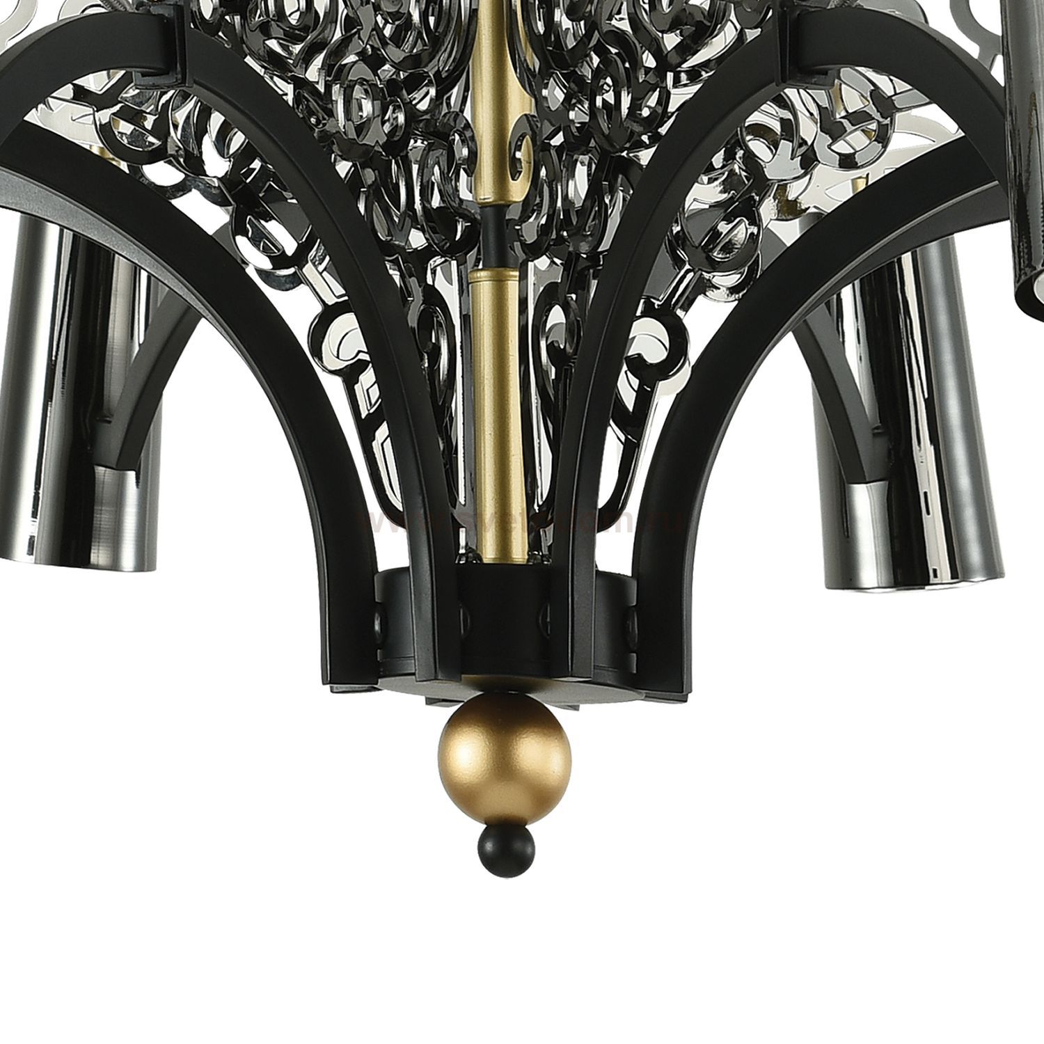 сочетание металла цвета черного хрома и окрашенного золота, центральная трубка состоит из нескольких частей, что позволяет регулировать высоту люстры Штрих-код