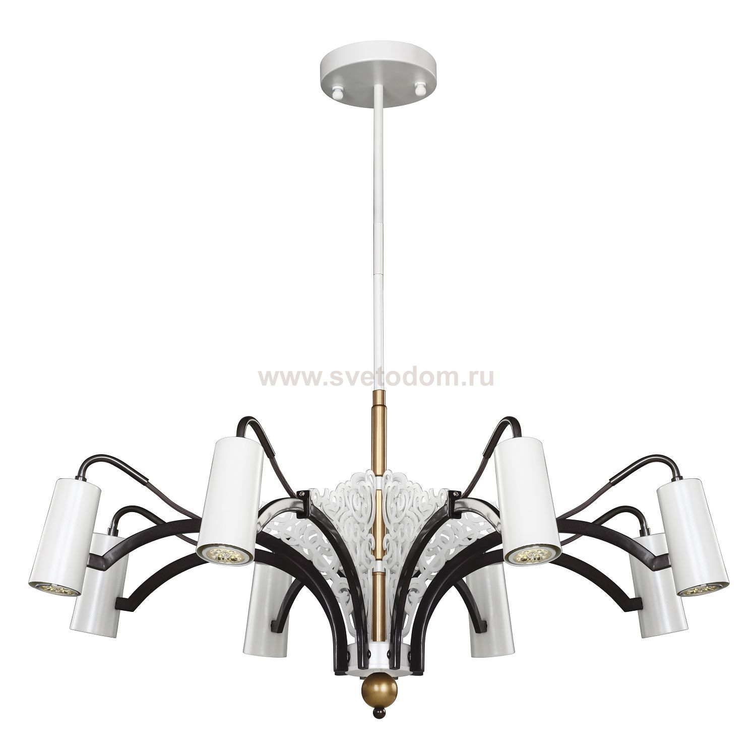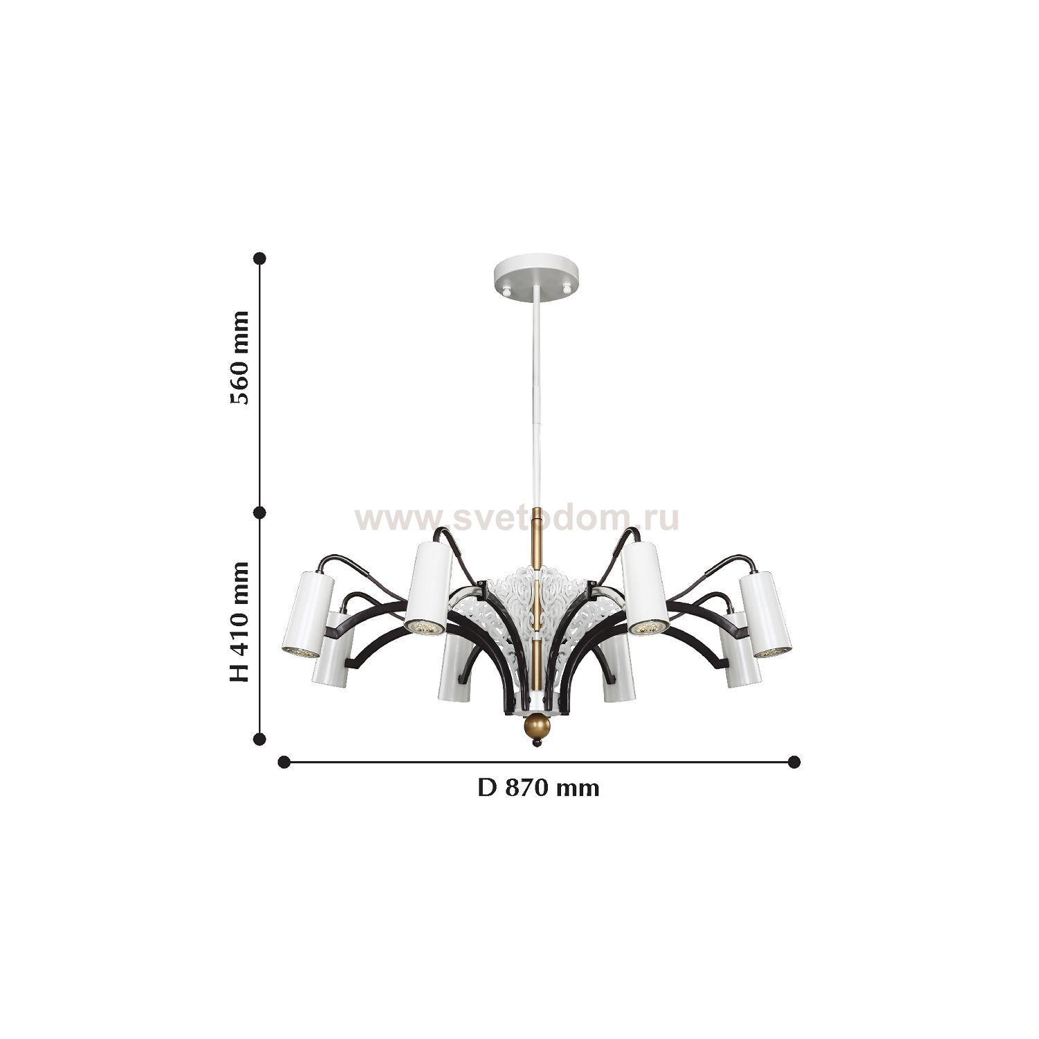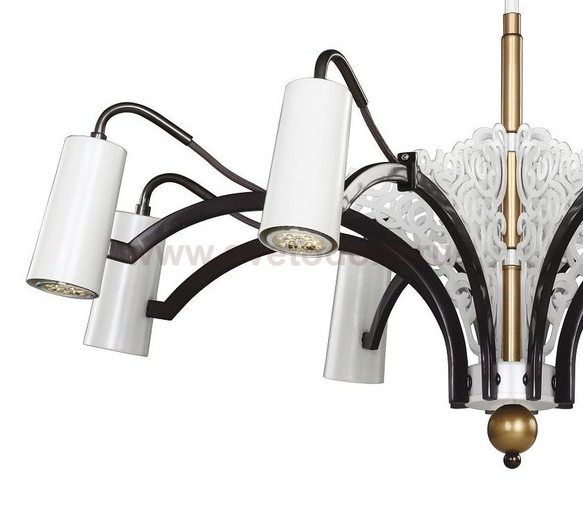 сочетание металла жемчужно-белого цвета с элементами золотого и черного цвета, центральная трубка состоит из нескольких частей, что позволяет регулировать высоту люстры Штрих-код