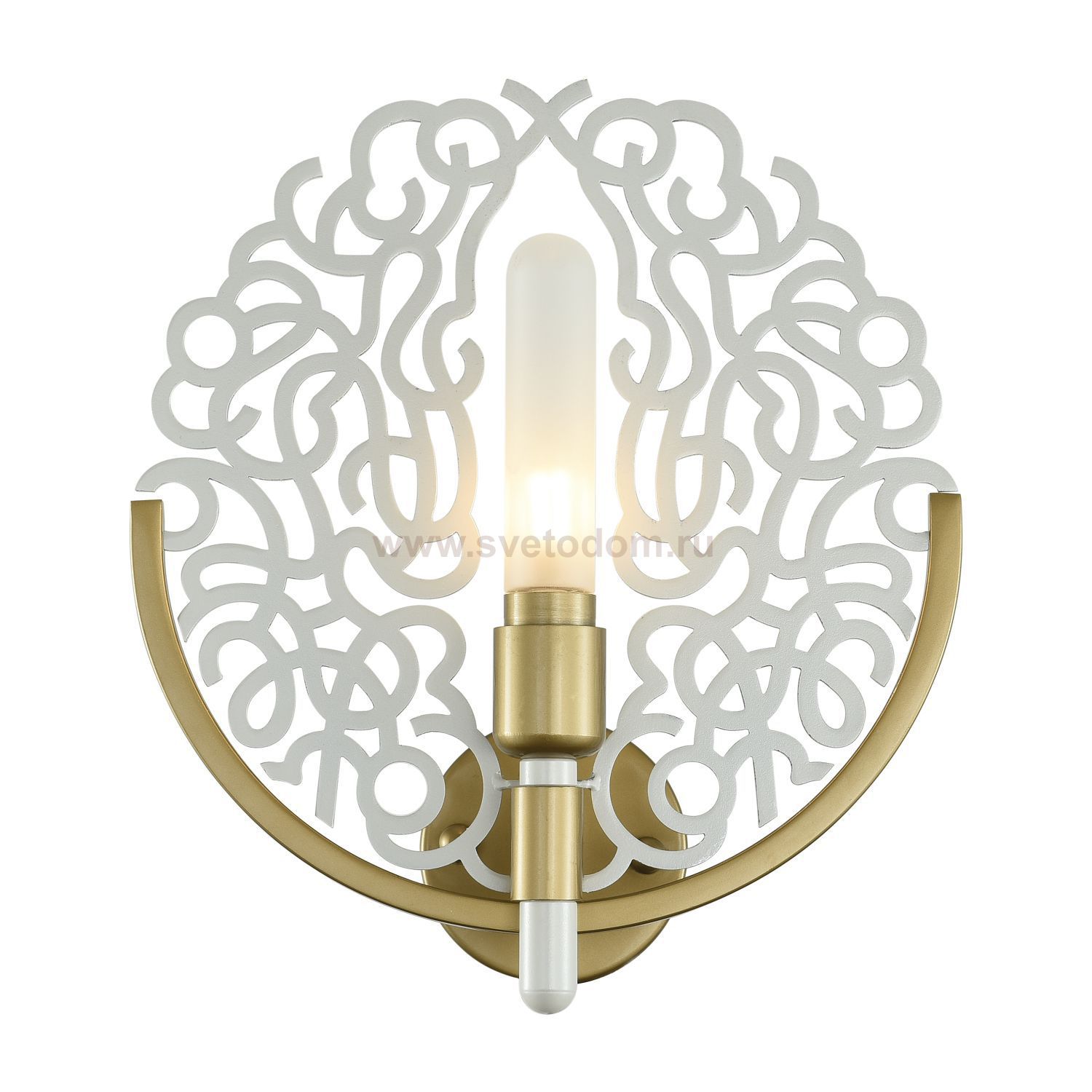 сочетание металла жемчужно-белого цвета с элементами золотого цвета, стеклянный плафон из матового стекла Штрих-код
