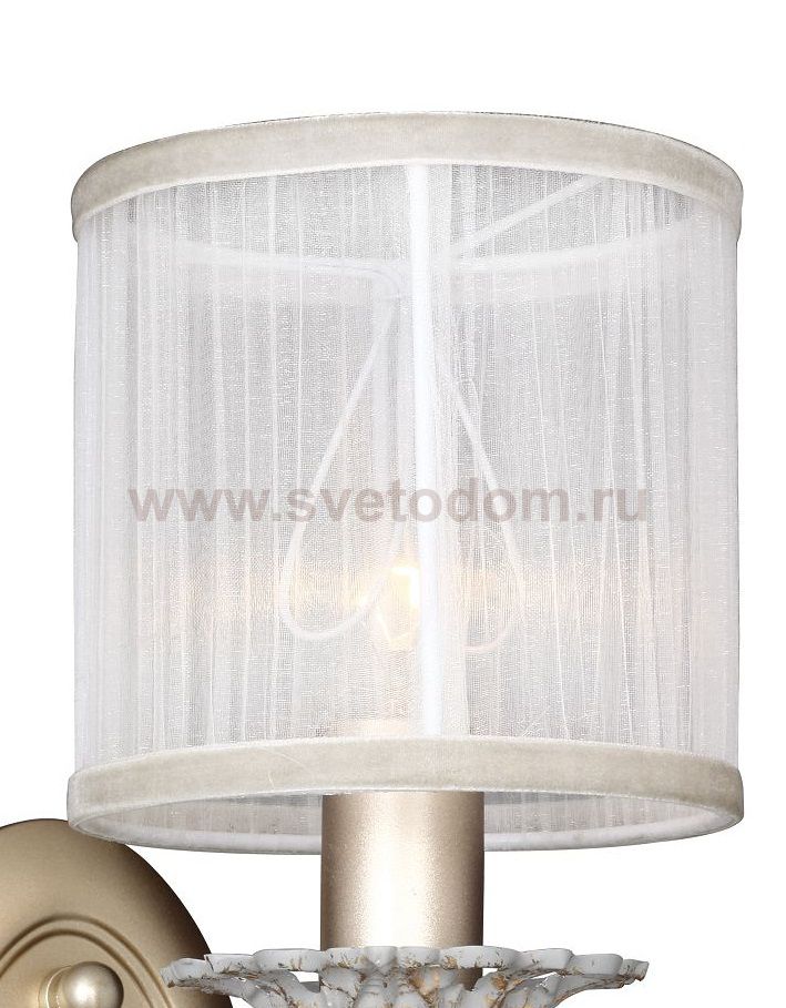 каркас светильника окрашен в золотистый цвет в сочетании с благородным серым с золотой патиной, тканевые абажуры из белой органзы Материал плафона