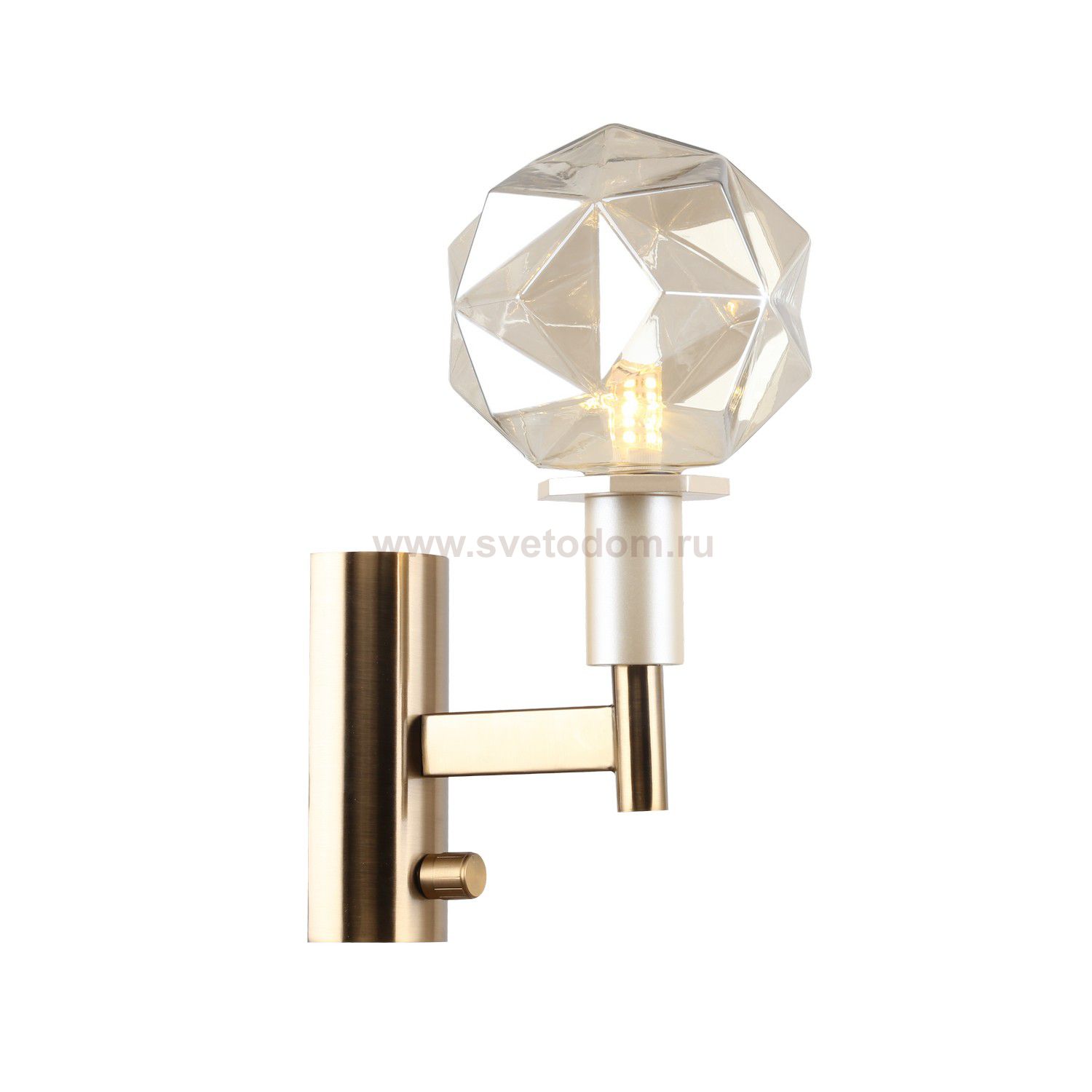 каркас золотого и перламутрово-белого цвета, плафон из стекла цвета шампанского, управление с помощью диммера Штрих-код