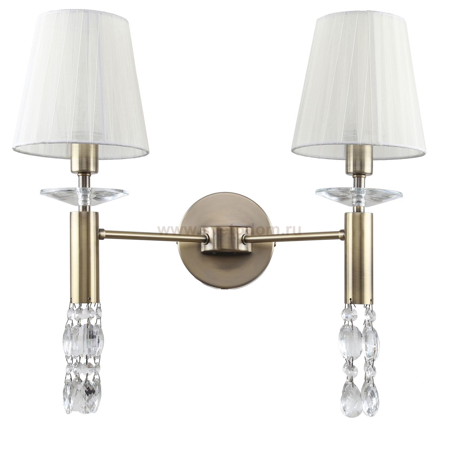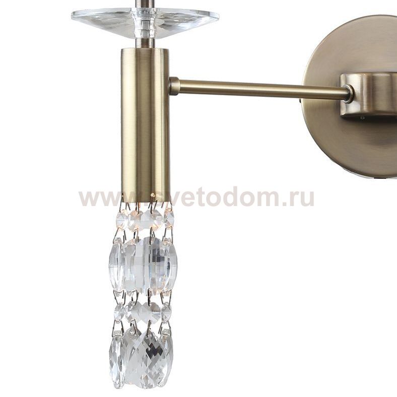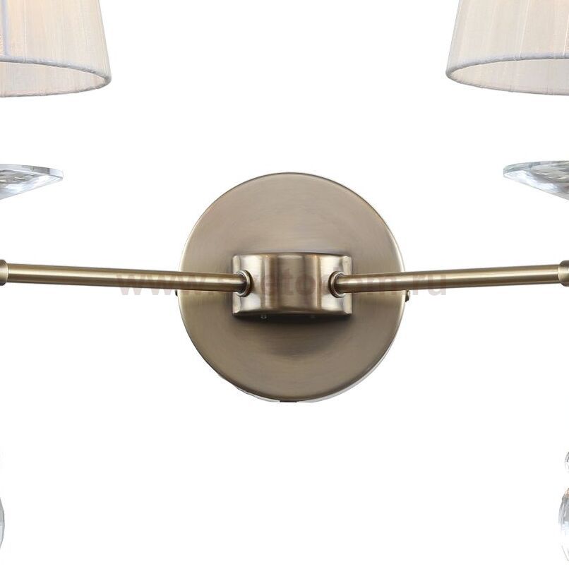 каркас цвета античная бронза, абажуры из полупрозрачной бежевой ленты, хрусталь высшего качества, дополнительный источник света G9 в нижней части рожков бра Штрих-код