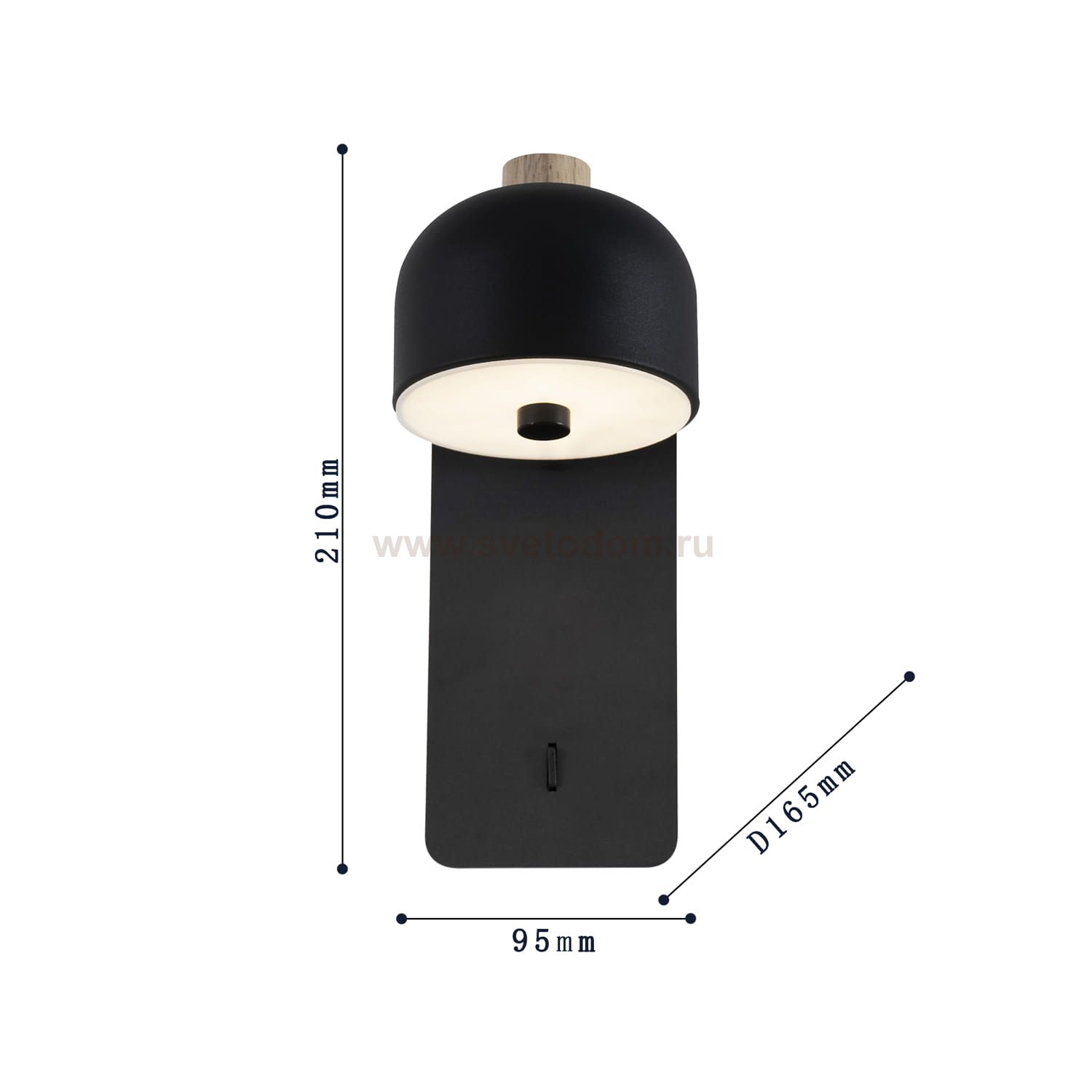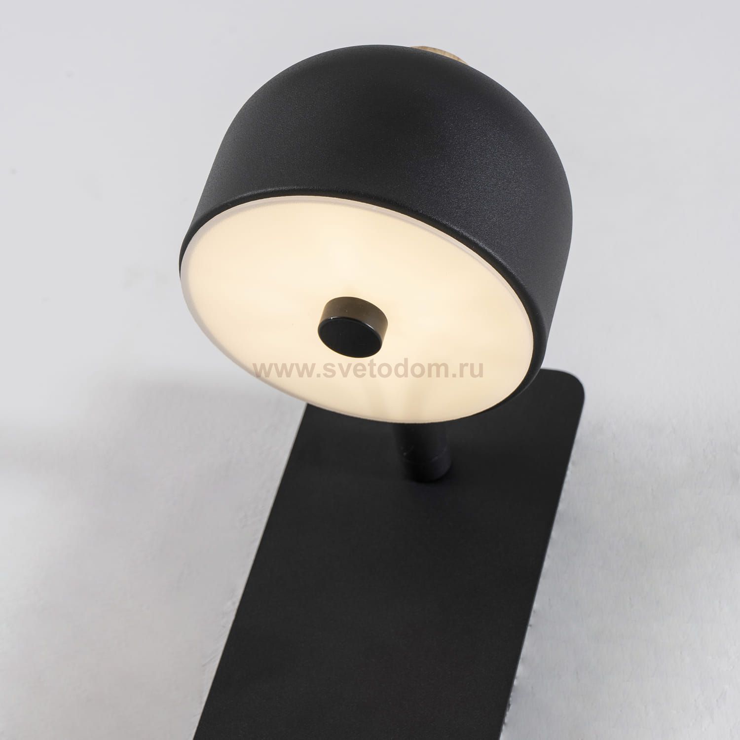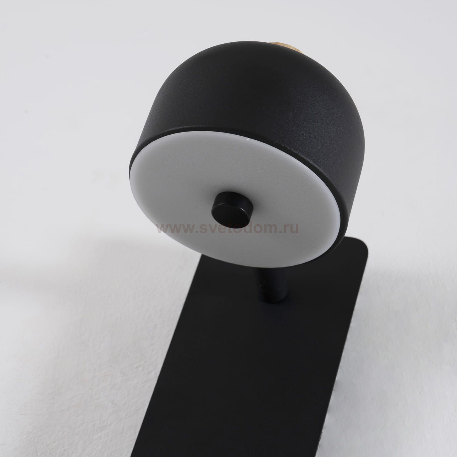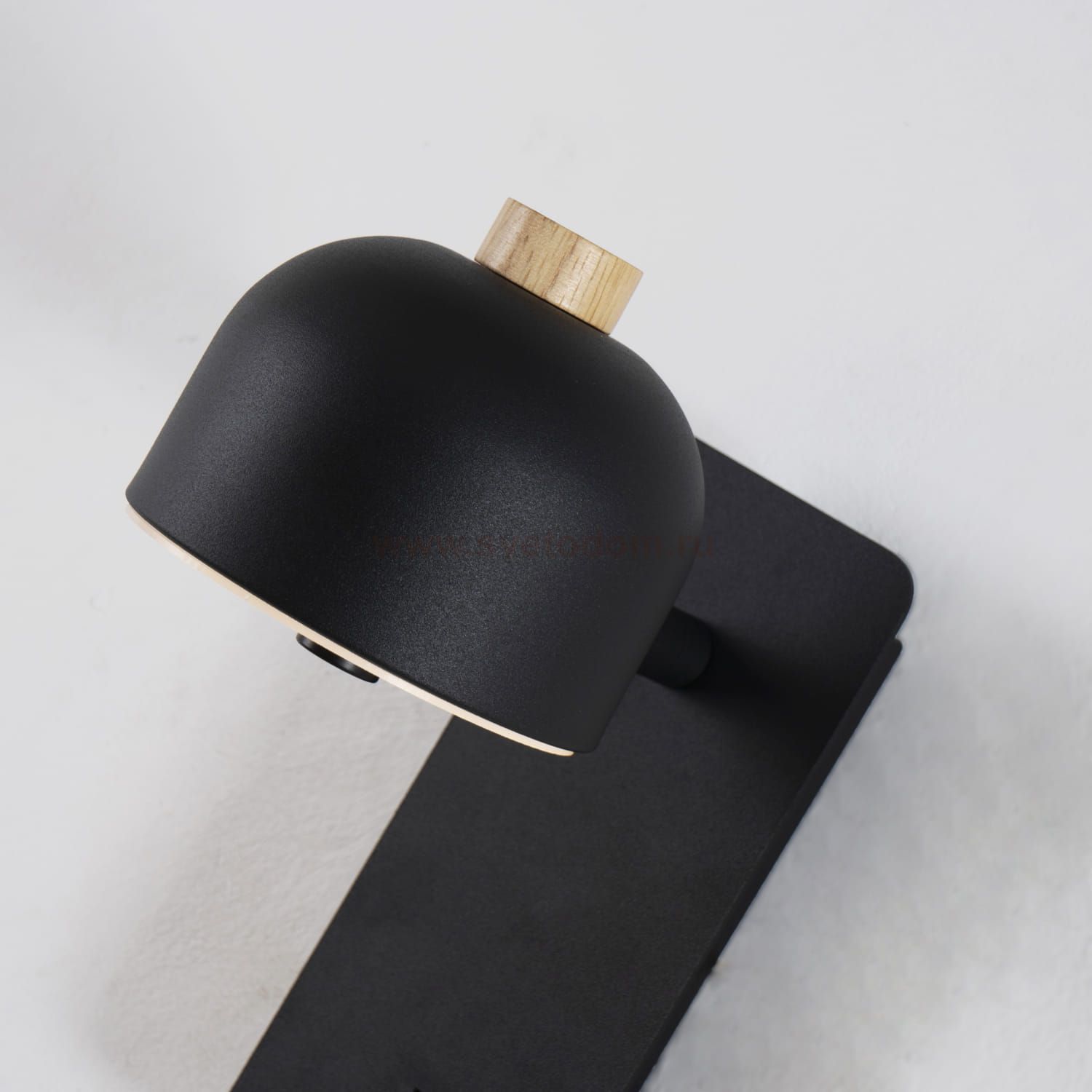 Настенный поворотный светильник черного цвета, с выключателем, декорирован деревянным элементом, акриловый матовый рассеиватель надежно защищает глаза от яркого света LED Штрих-код