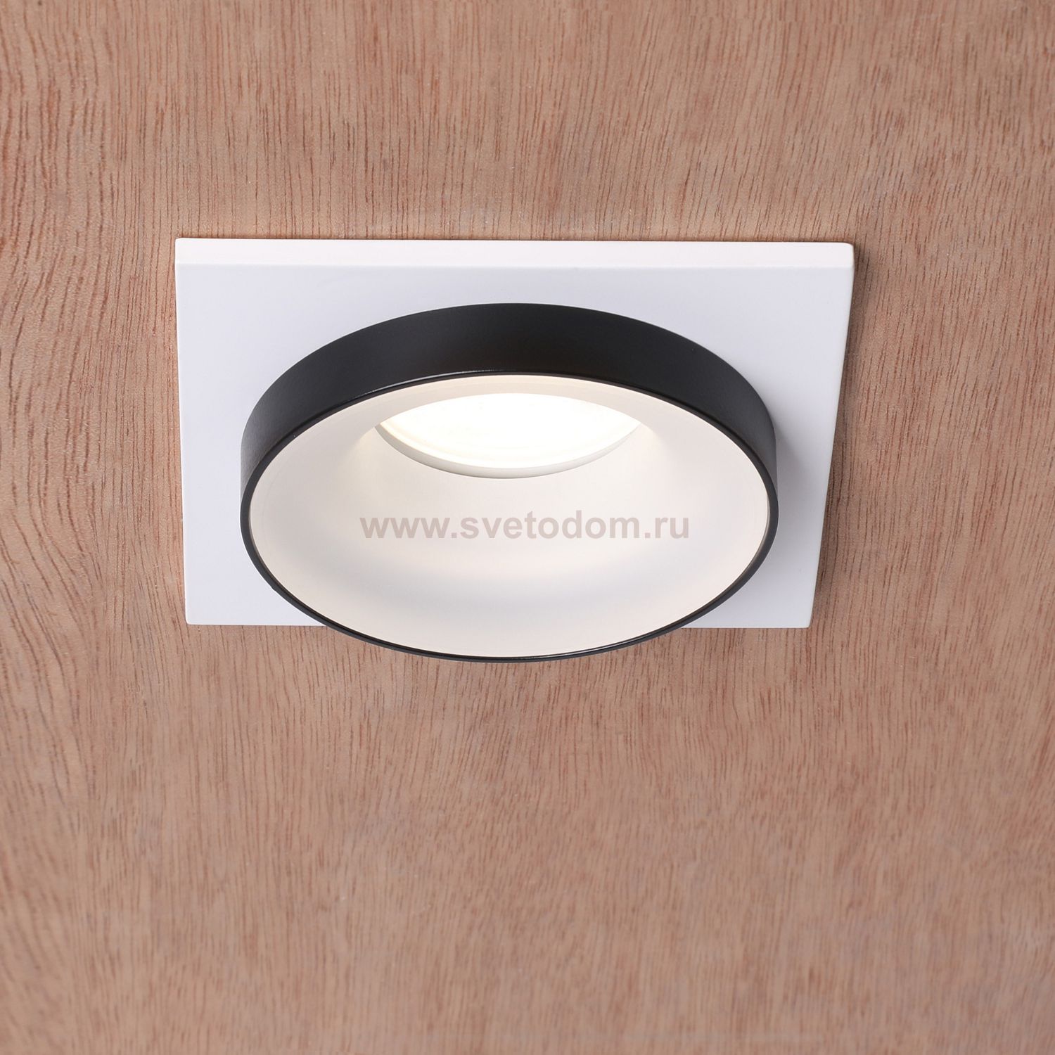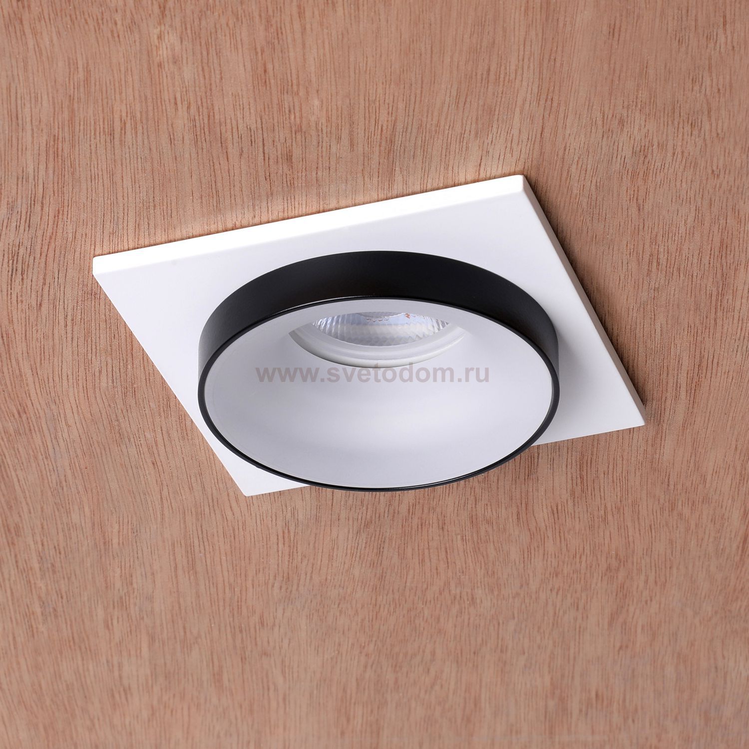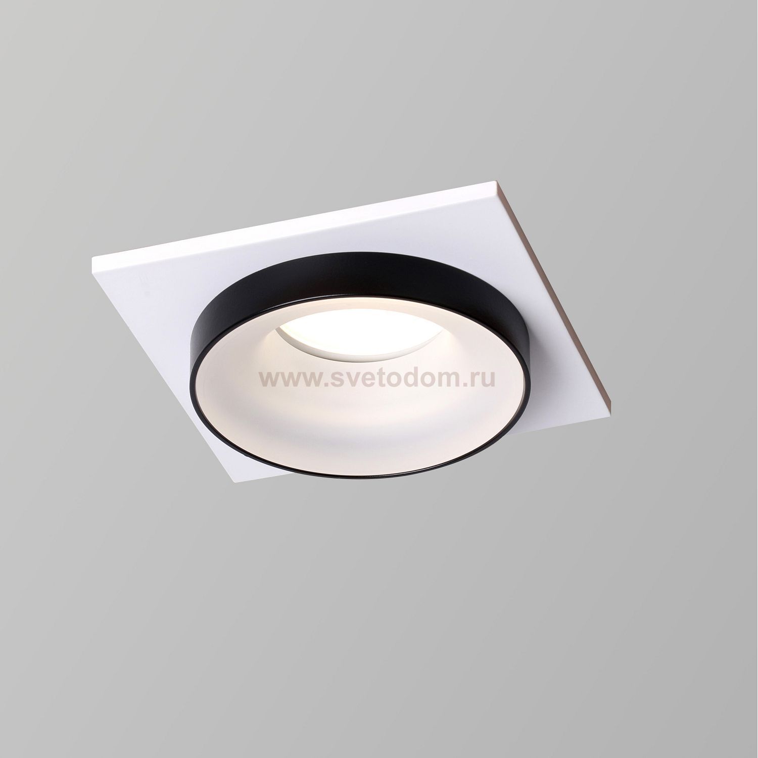 Врезной светильник представляет собой квадратное основание белого цвета с плафоном черного цвета и белым внутренним кольцом, лампу можно менять Штрих-код