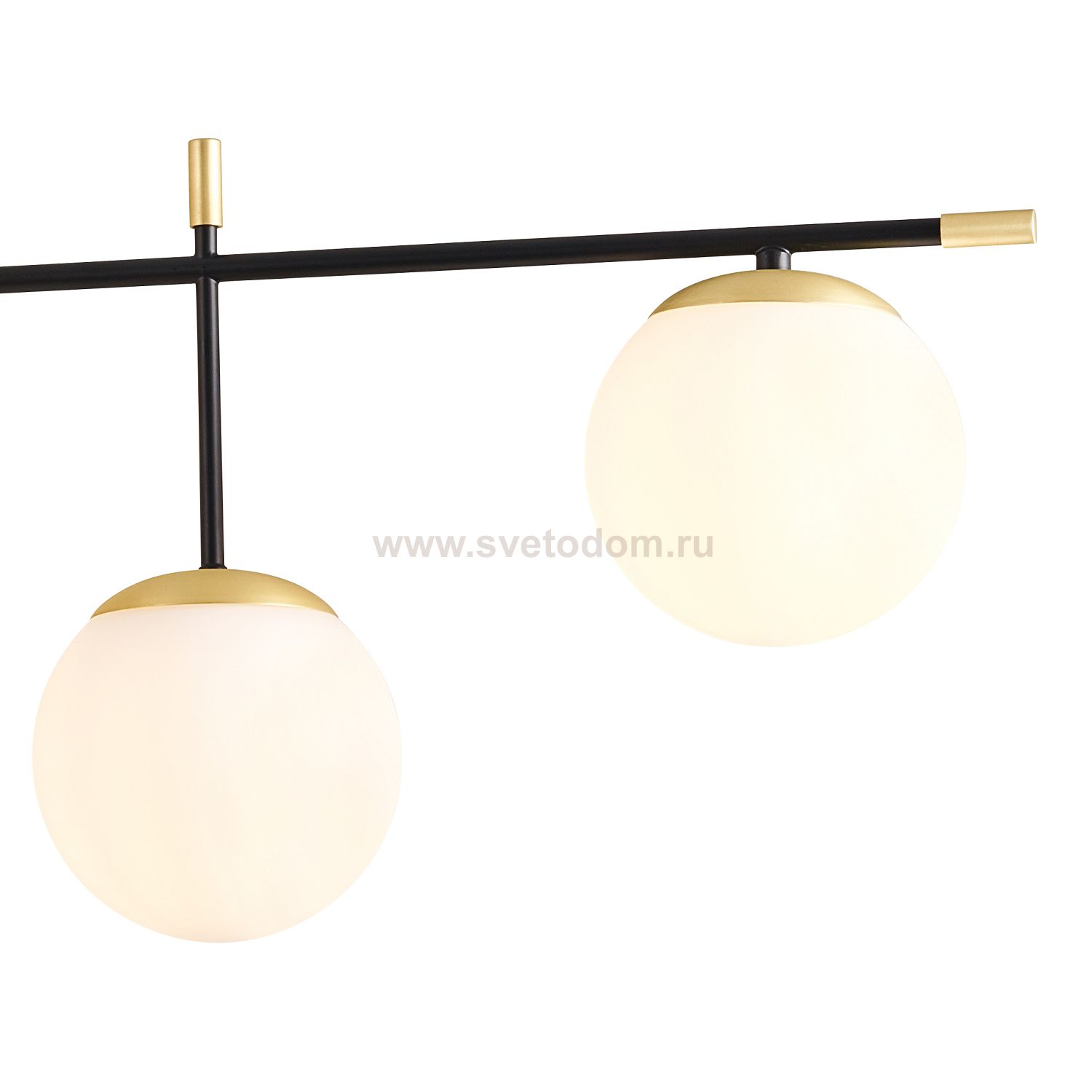 каркас светильника сочетает два цвета - черный и золото, плафоны шарообразной формы из белого матового стекла Цвет декора