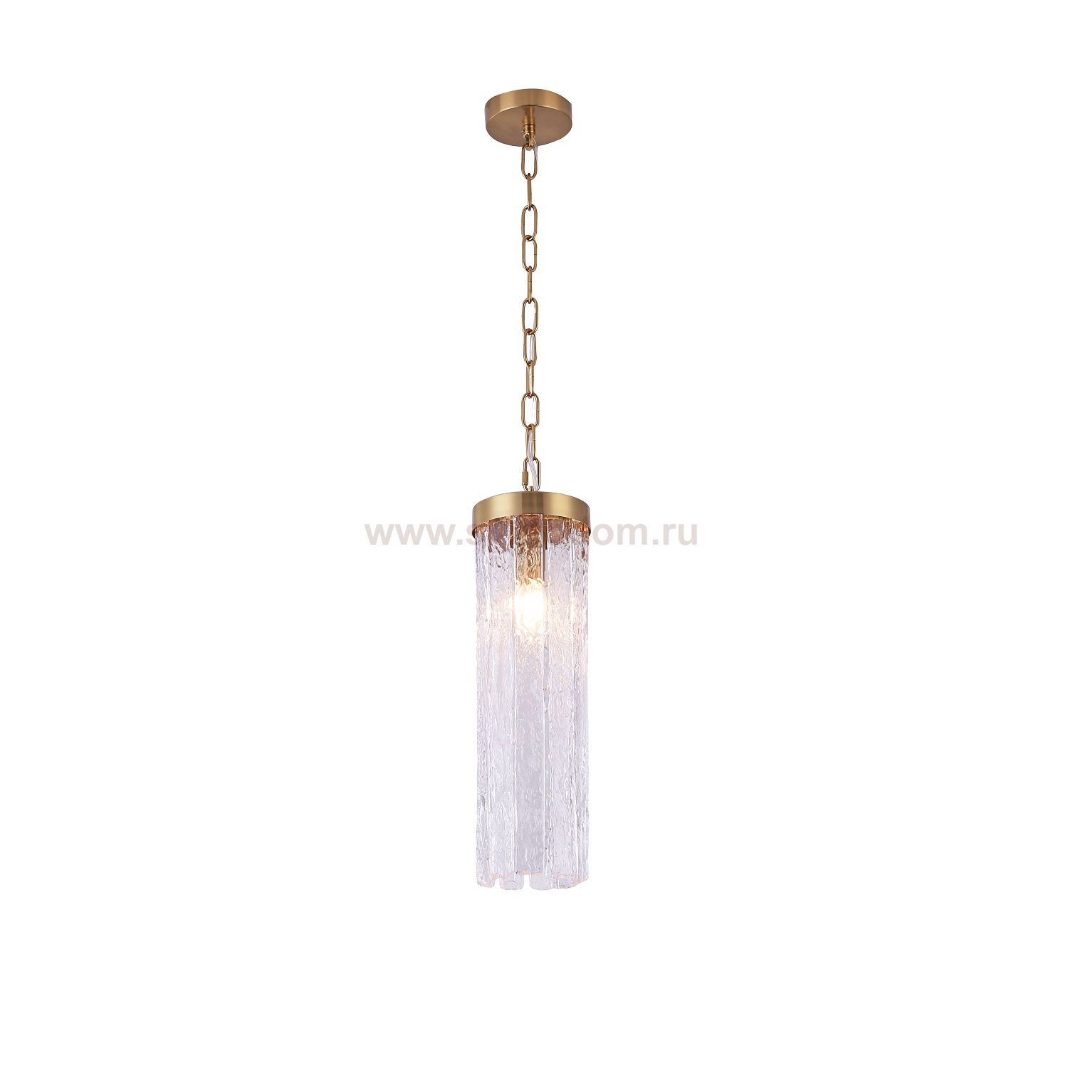 каркас цвета латуни, плафон состоит из стеклянных прозрачных пластин вытянутой формы, выполненных по муранской технологии Цвет декора