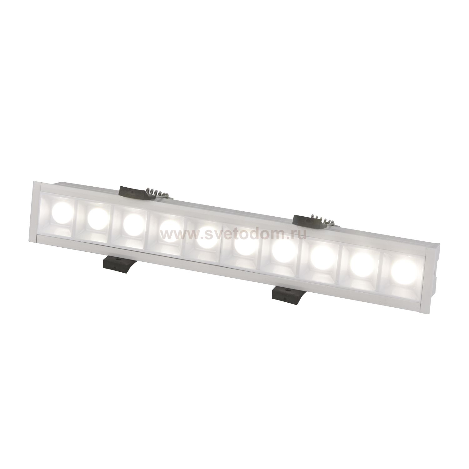 врезной прожекторный светильник, каркас белого цвета, возможность составления комбинации из нескольких светильников Цвет декора