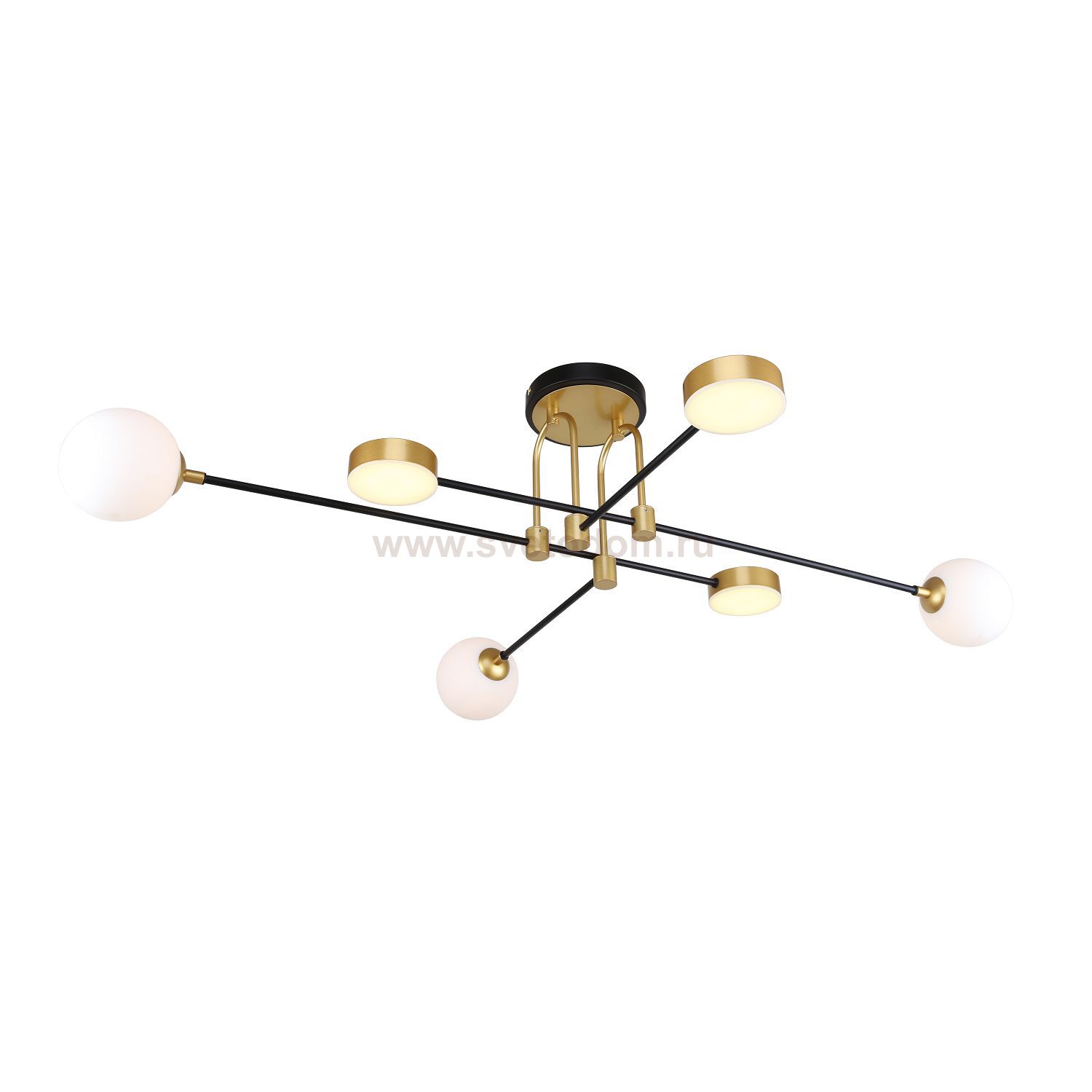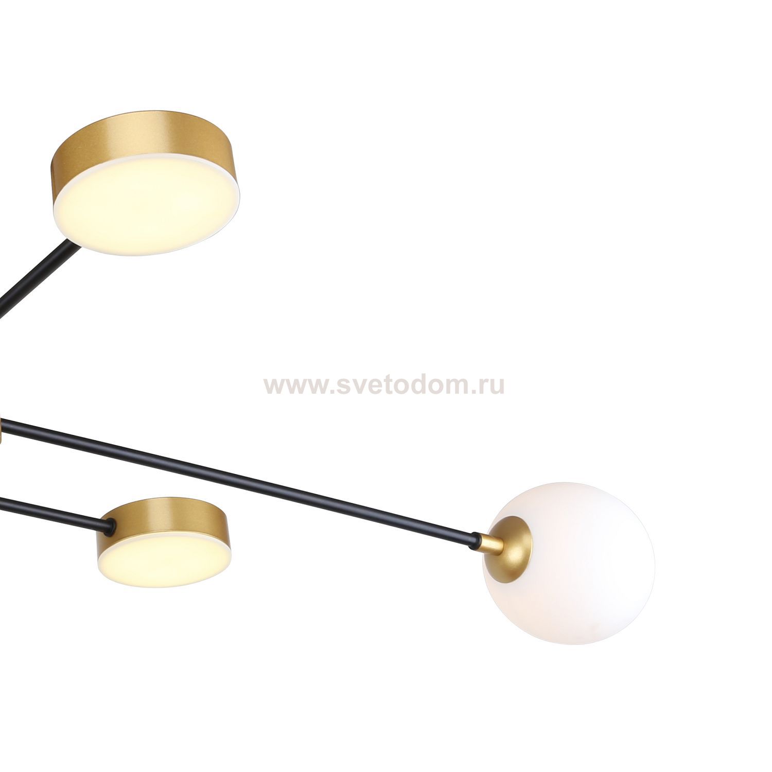 каркас черного цвета с декоративными элементами цвета золота, плафоны из белого стекла, рассеиватели из белого акрила, лампу G9 можно менять Цвет декора