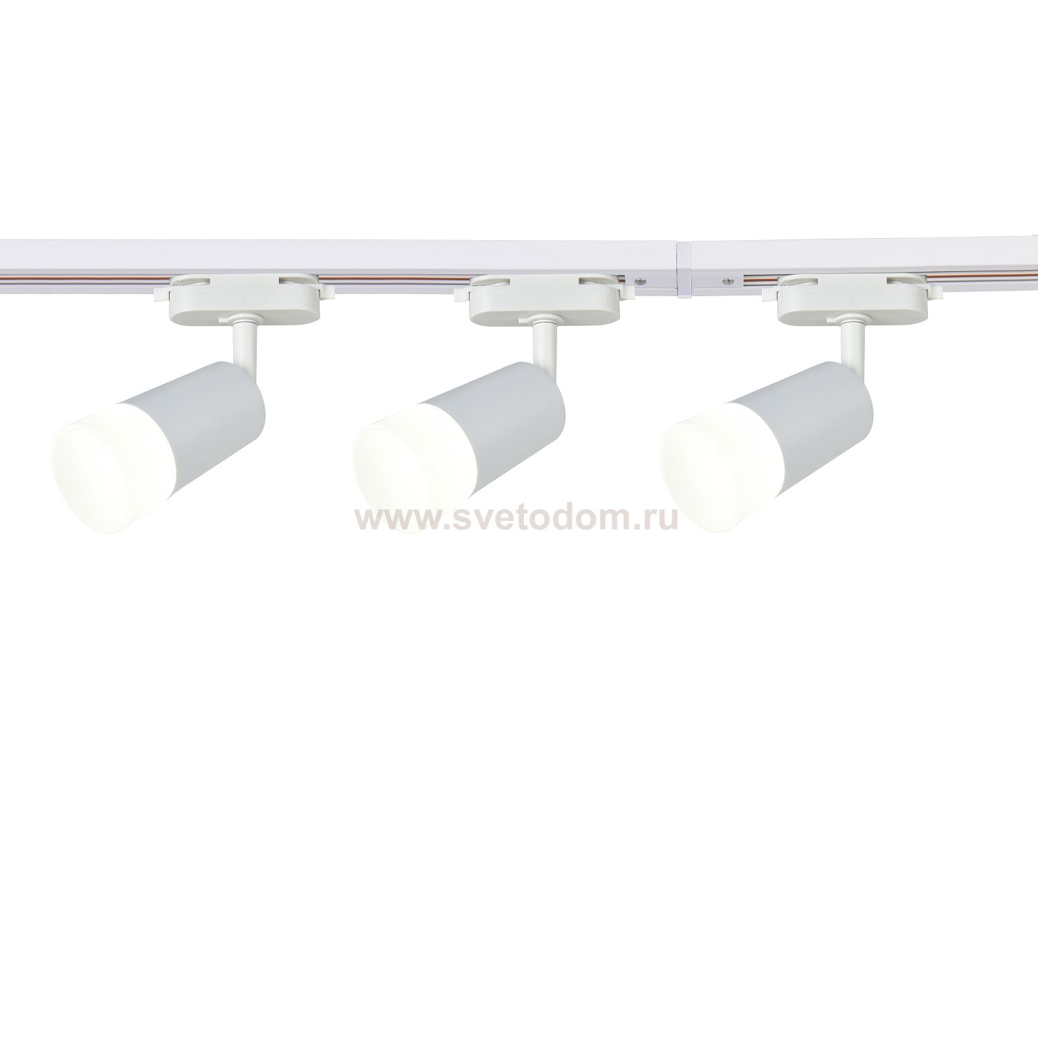 каркас белого цвета, в комплект трековой системы входят: 3 спота, шинопровод (2х1м) и коннектор, угол поворота до 90° Цвет декора