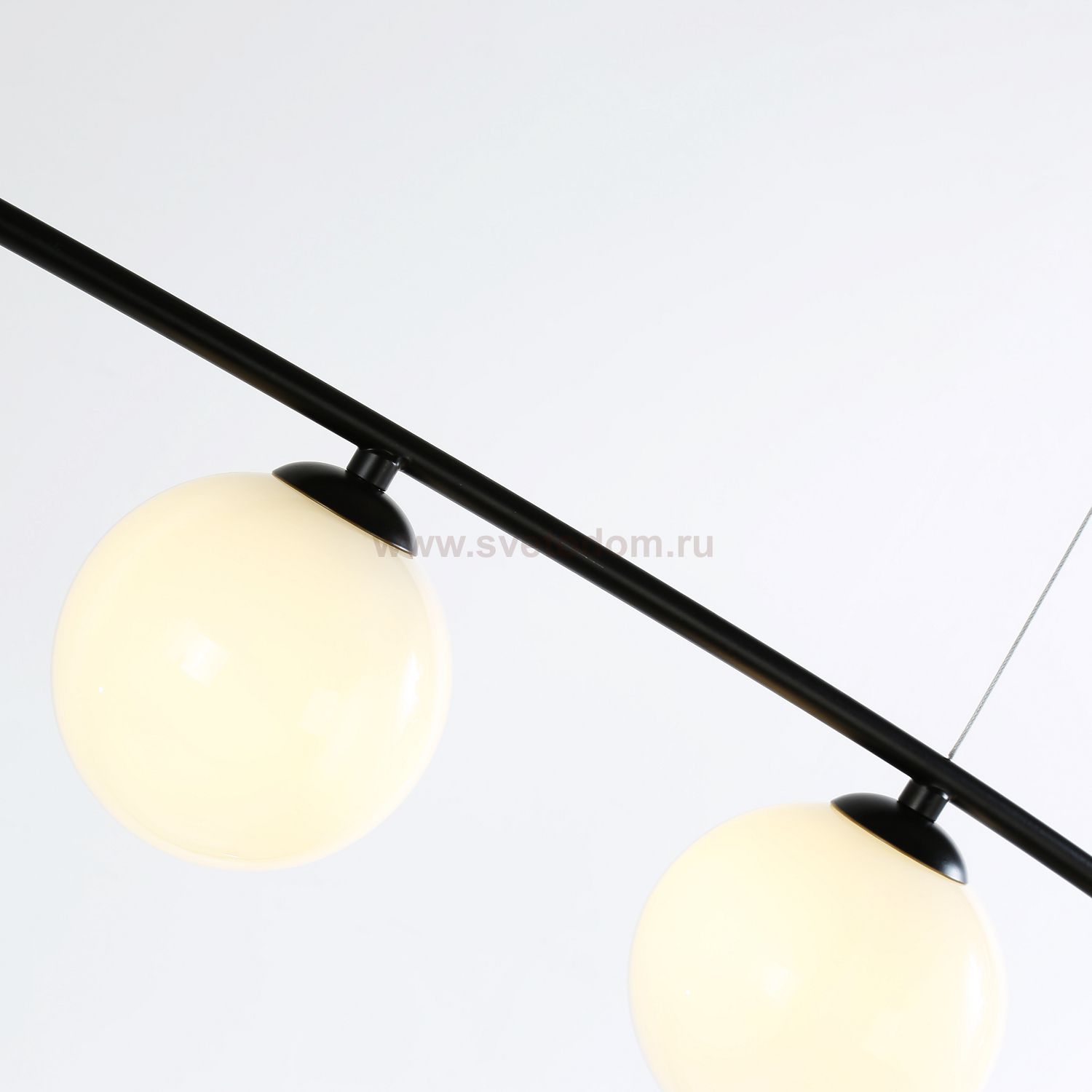 каркас матового черного цвета, плафоны из выдувного белого стекла дуплекс, лампу G9 можно менять Цвет декора