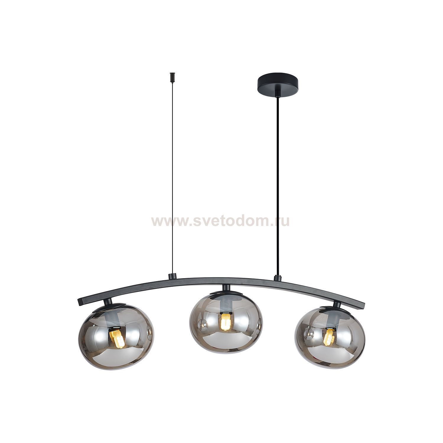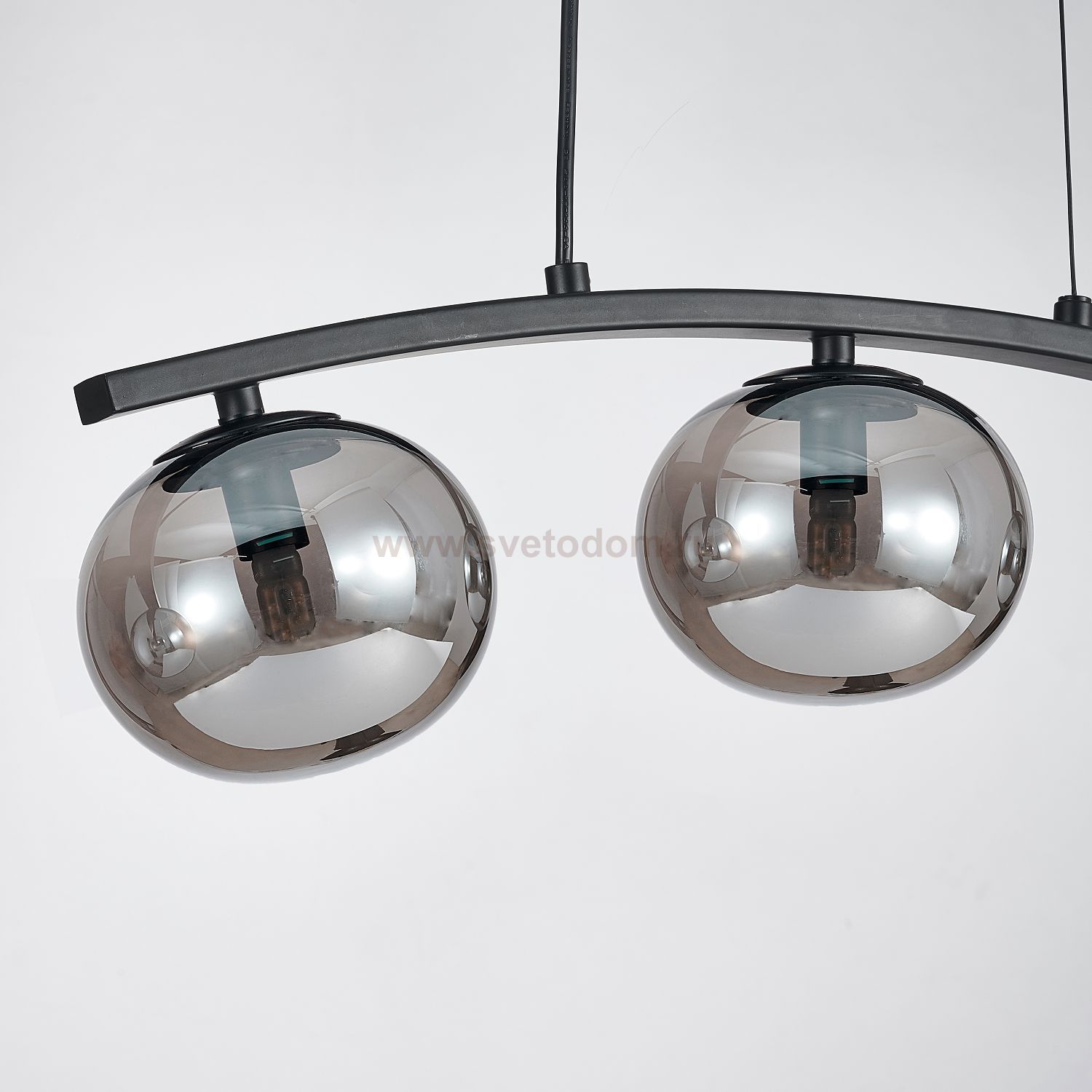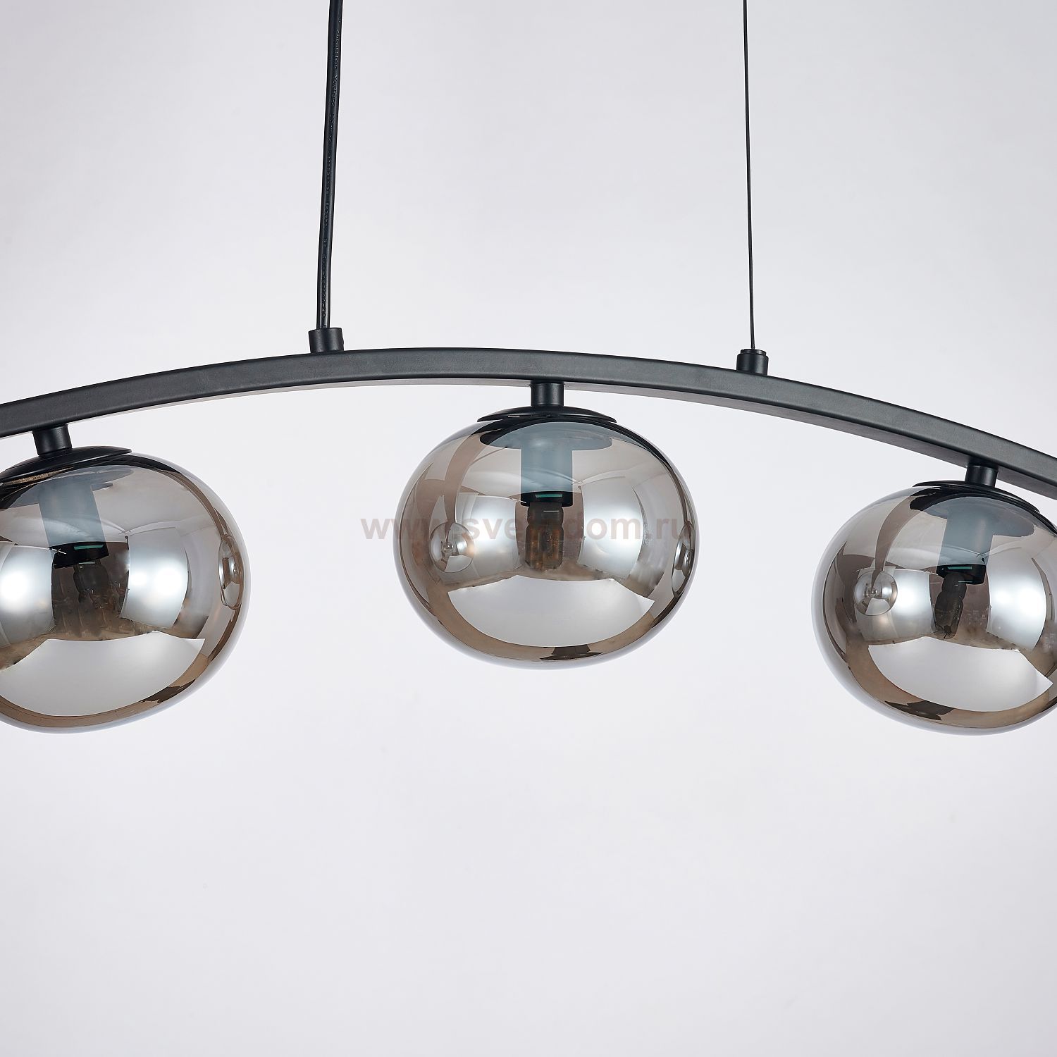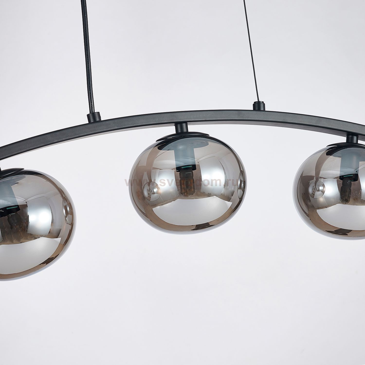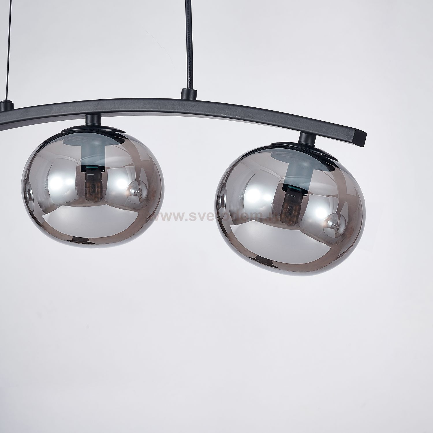 дугообразный каркас матового черного цвета, серые плафоны с зеркальной тонировкой из выдувного стекла, лампу G9 можно менять, часть каркаса фиксируетс Серия