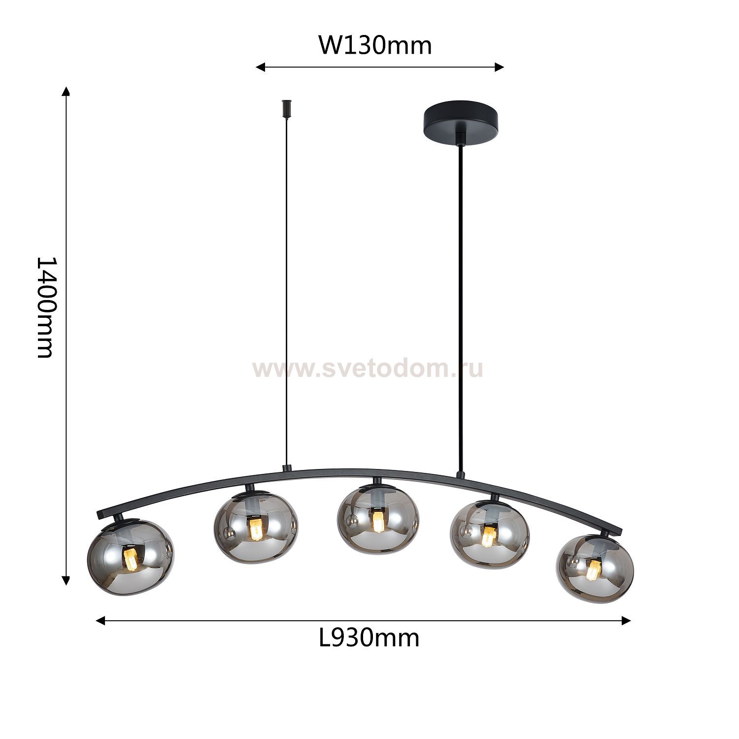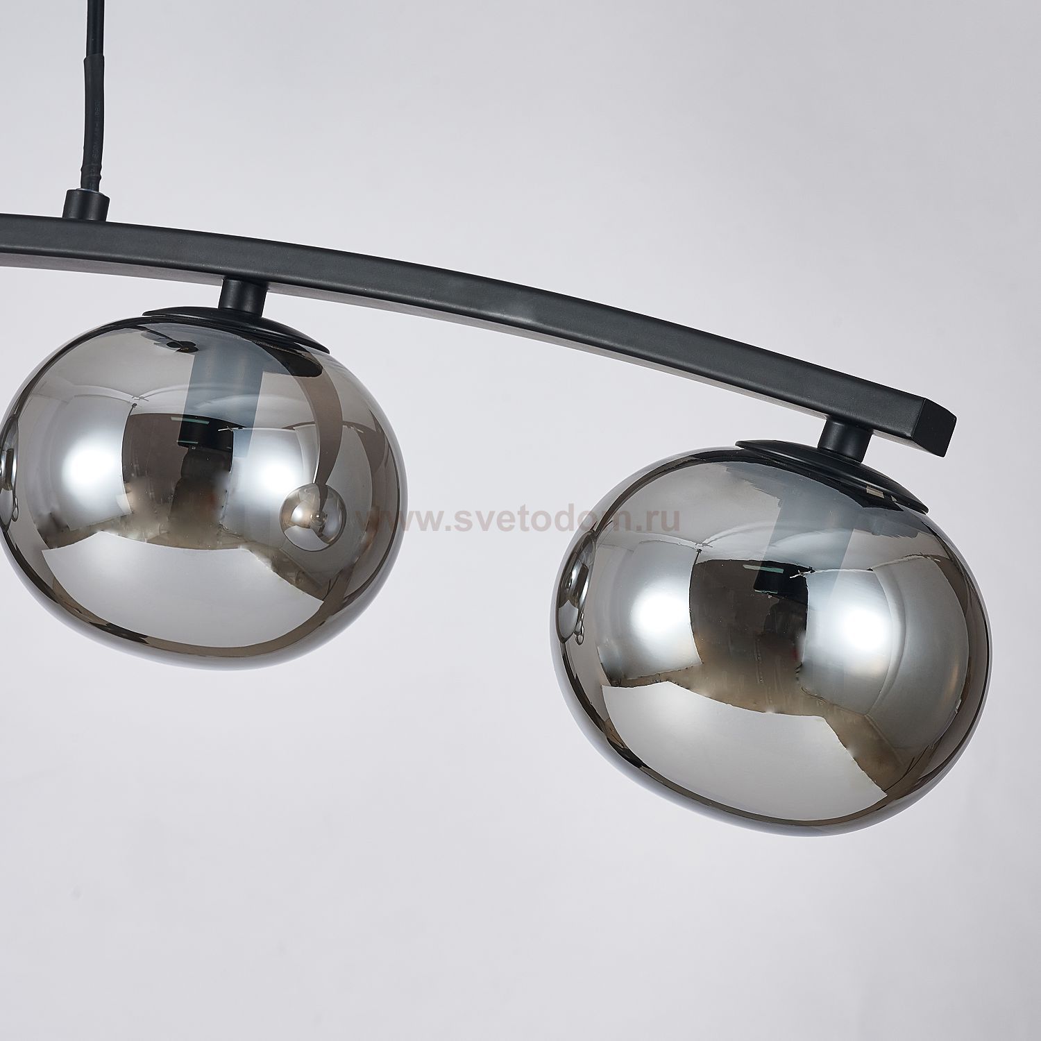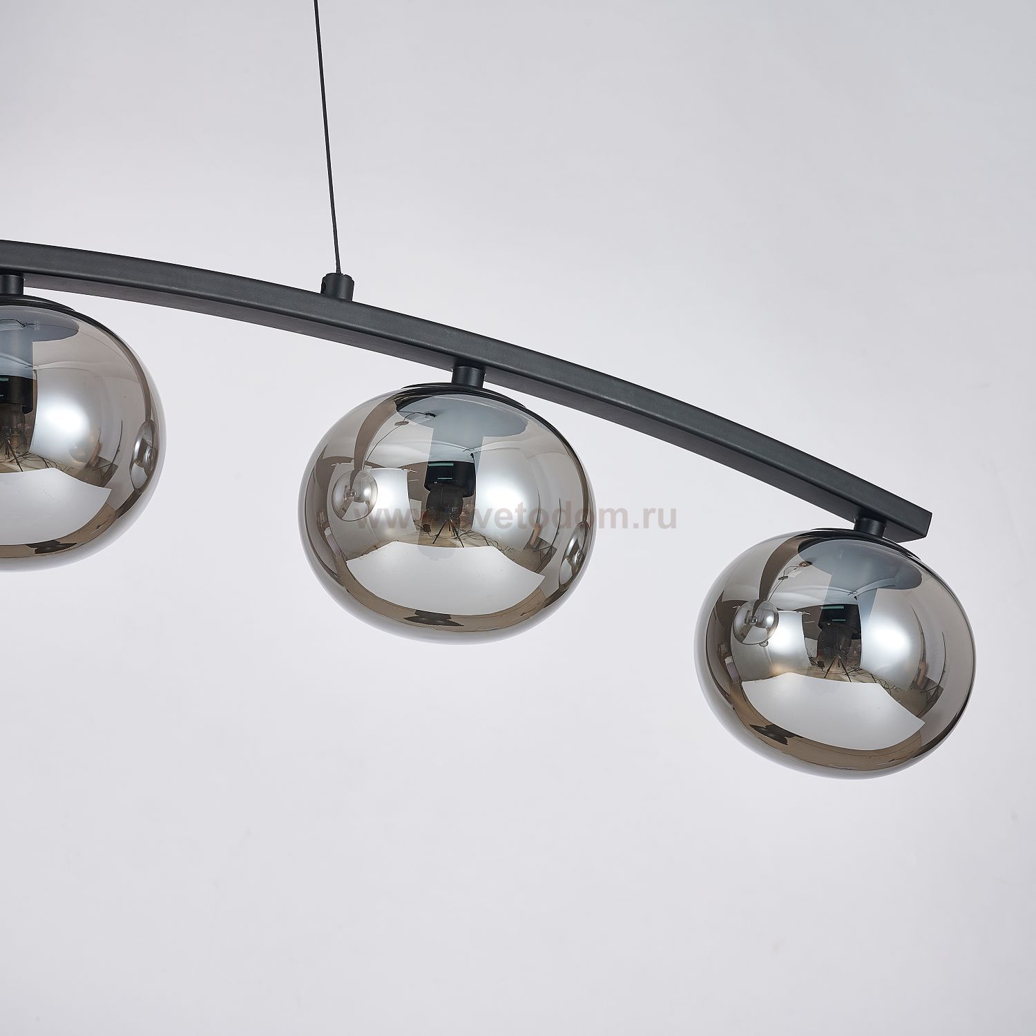 дугообразный матового черного цвета, серые плафоны с зеркальной тонировкой из выдувного стекла, лампу G9 можно менять, часть каркаса фиксируется троси Серия