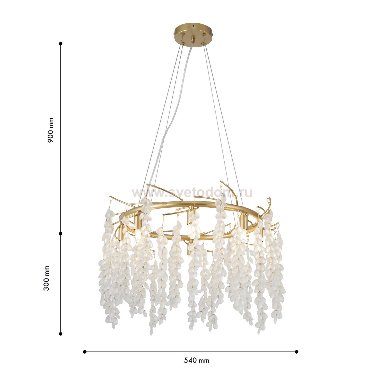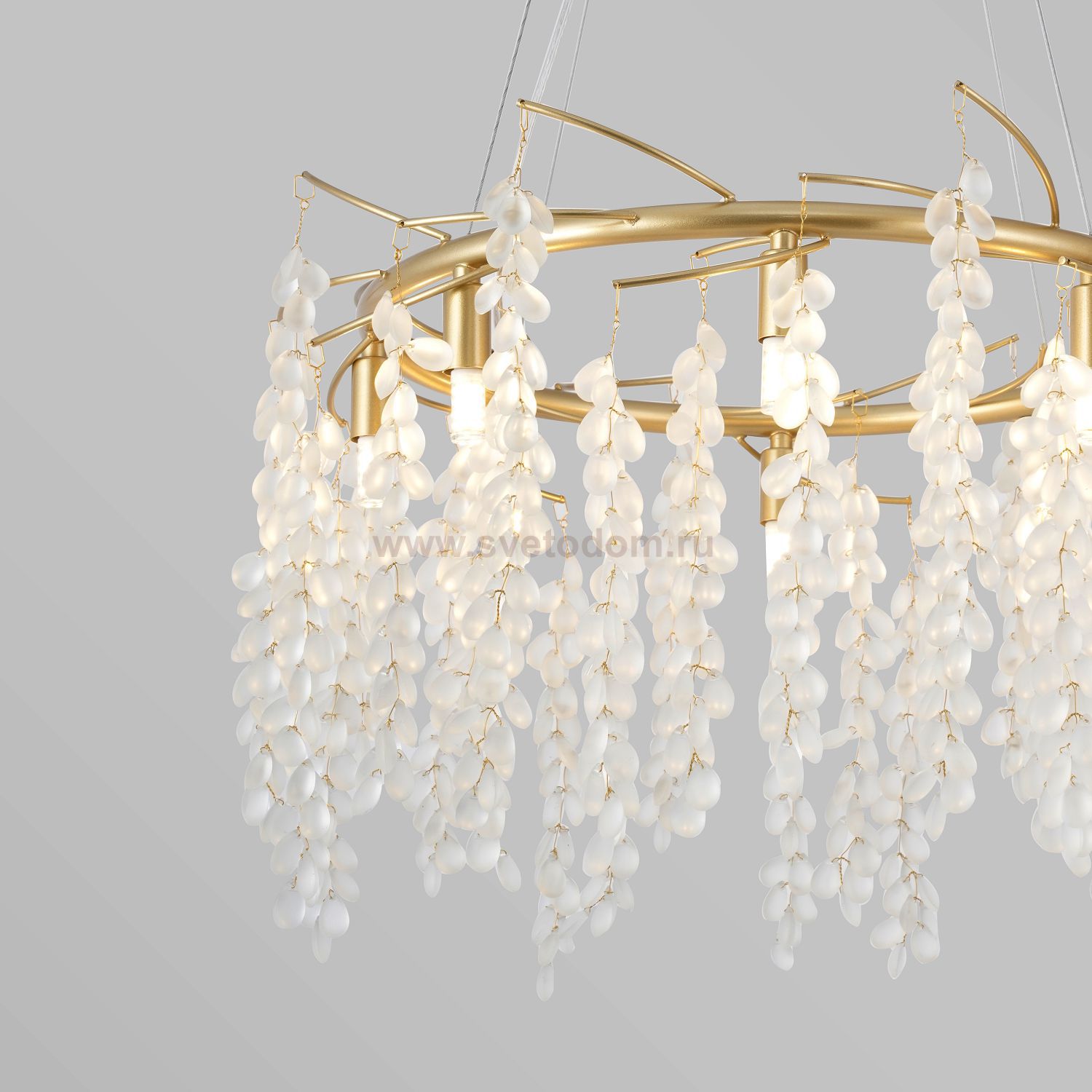 Каркас цвета золота, декор из стёкол белого матового цвета в виде виноградной грозди. Высоту люстры можно регулировать. Лампы можно менять Декор
