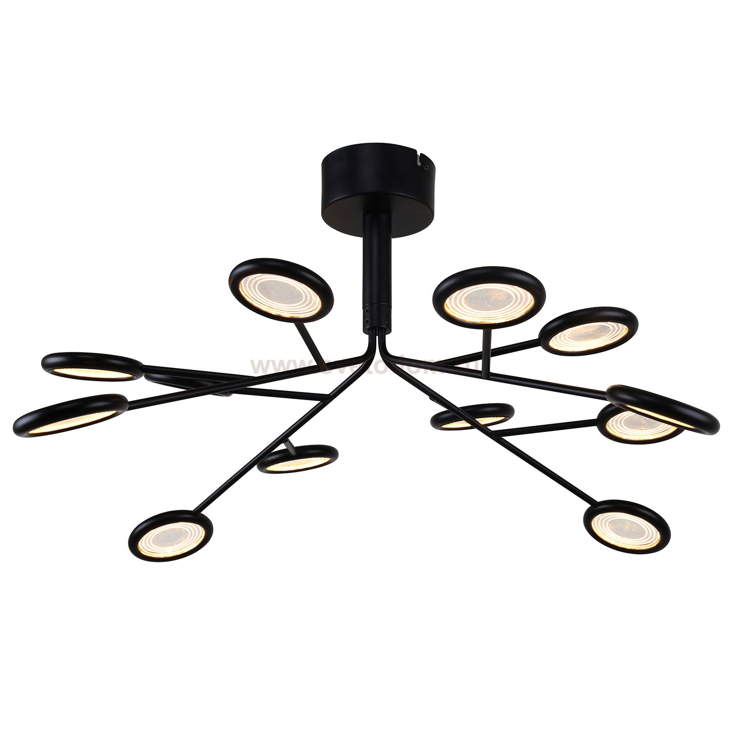 Подвесная/Потолочная люстра с матовым черным каркасом, внутренний периметр плафонов подсвечен лентой-LED, 3D-эффект усиливается за счет нанесенного на Серия