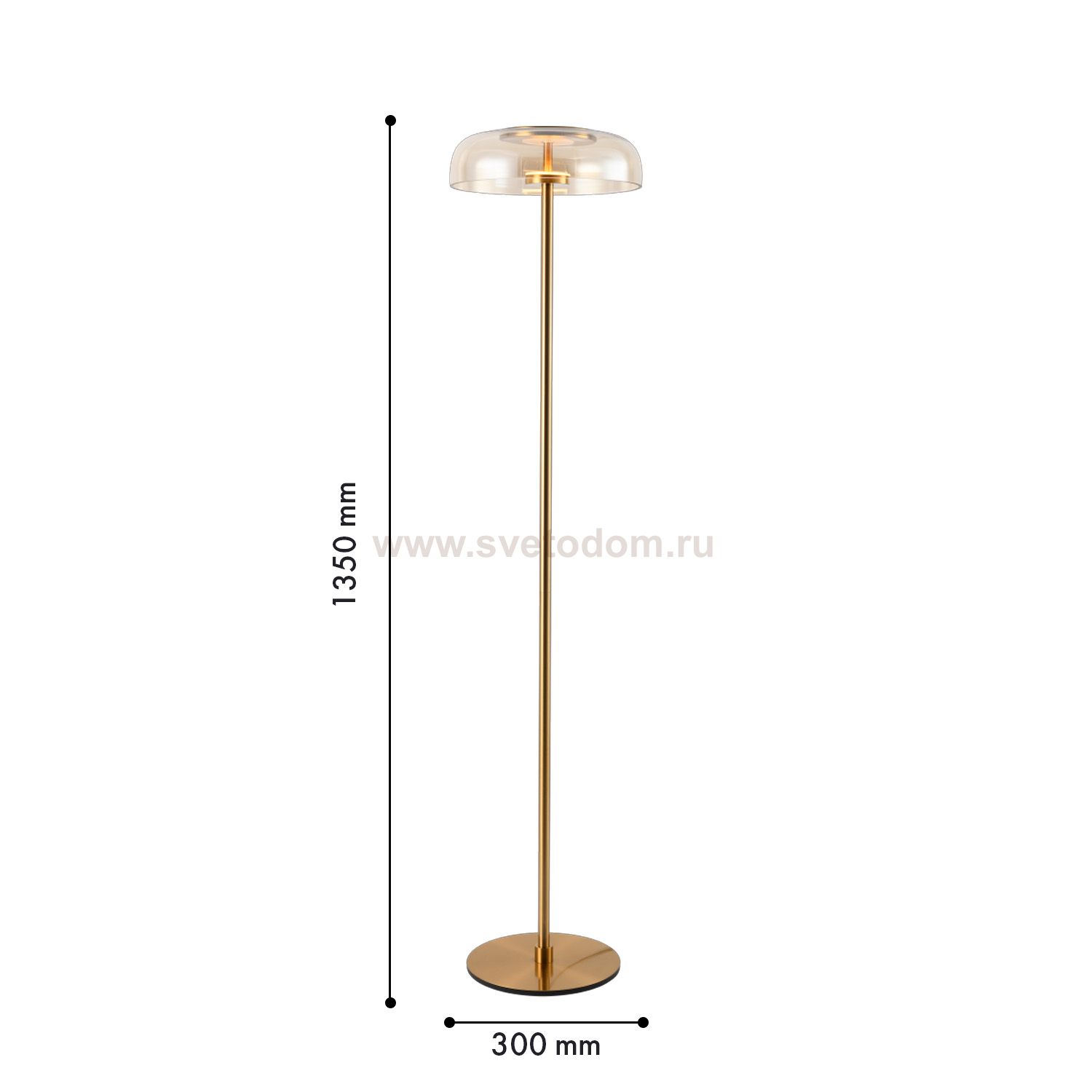 Торшер с латунным каркасом, с выдувным плафоном из прозрачного стекла, внутри которого находится светящийся элемент с модулем LED. Серия