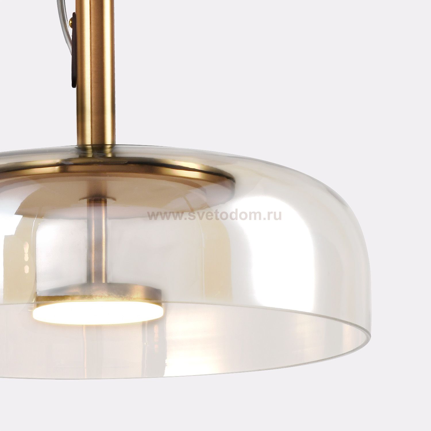 Подвес с латунным каркасом, с выдувным плафоном из прозрачного стекла, внутри которого находится светящийся элемент с модулем LED, регулируемая высота Серия