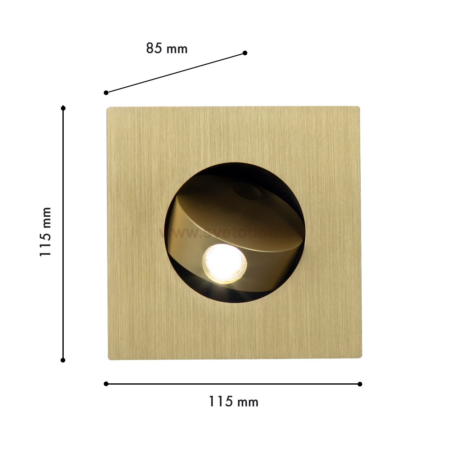 Встраиваемый настенный светильник с лампой LED, плафон в цвете анодированное золото со встроенным выключателем, угол поворота 350 градусов Серия