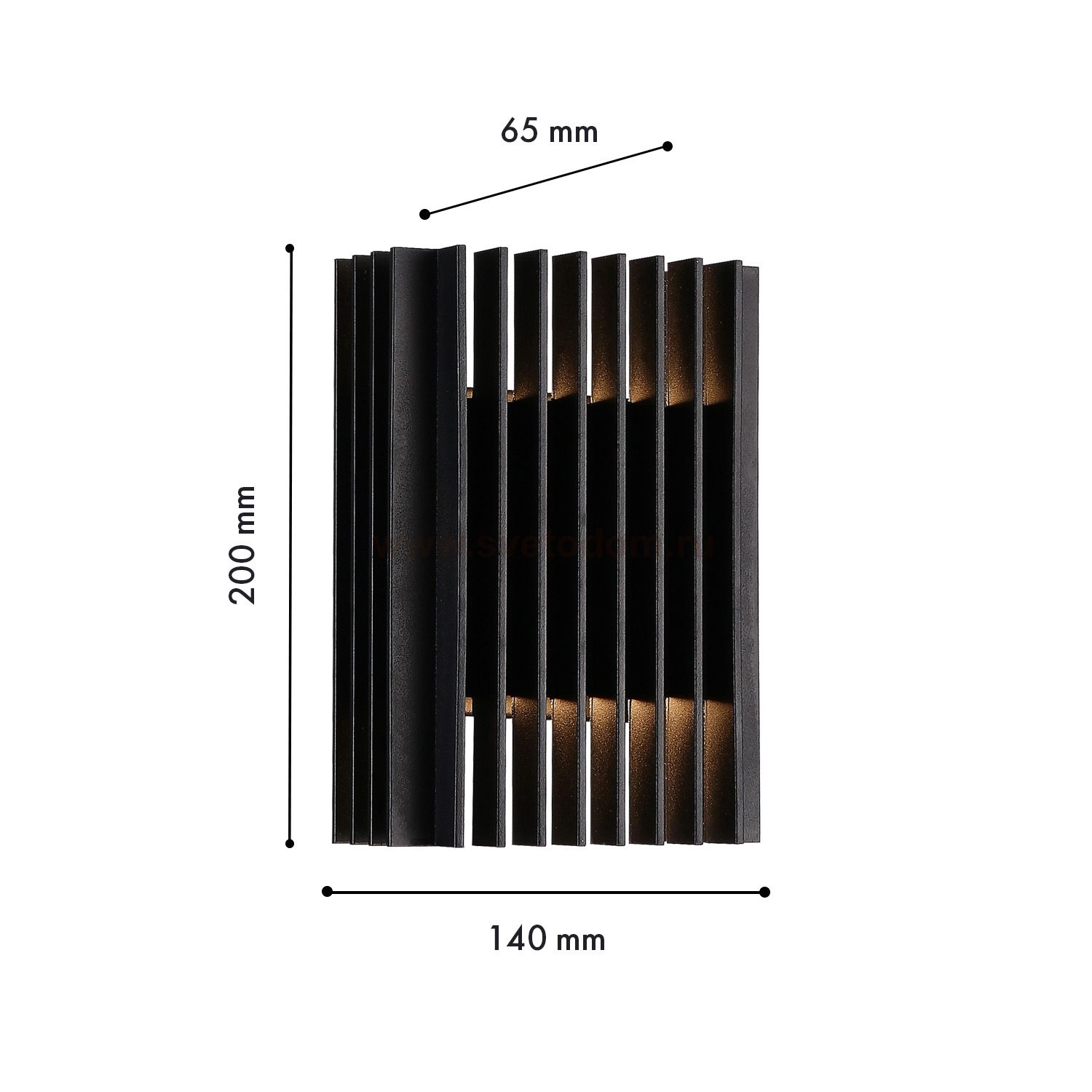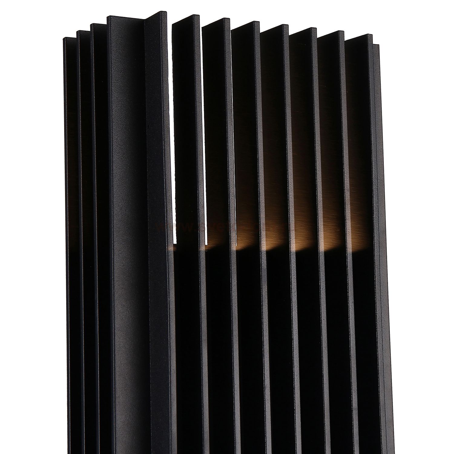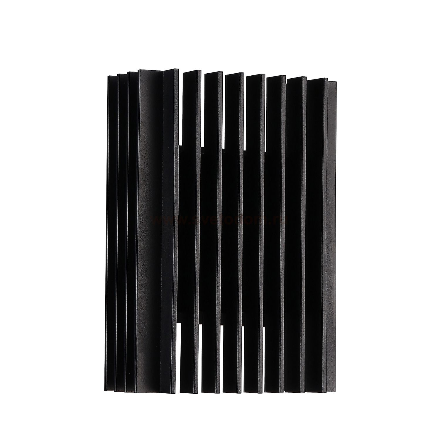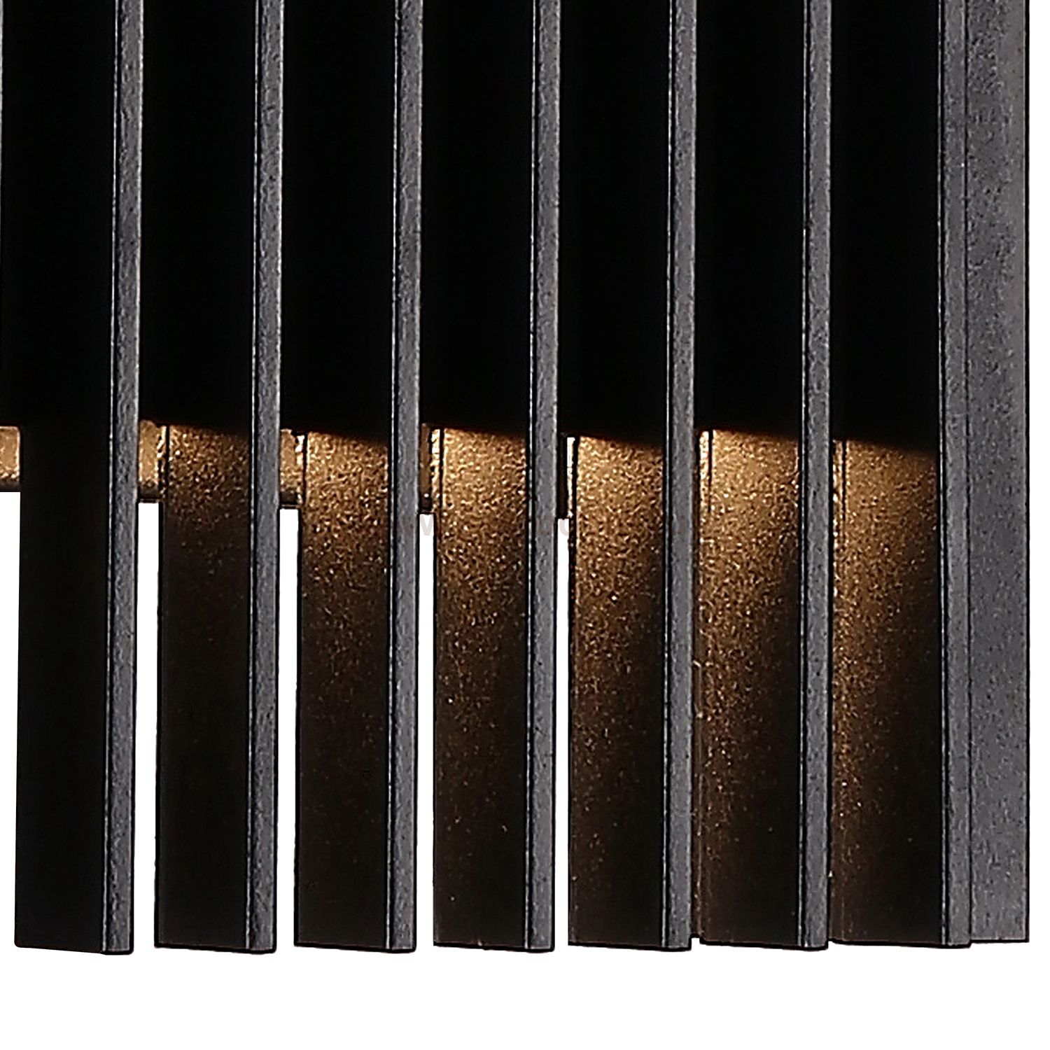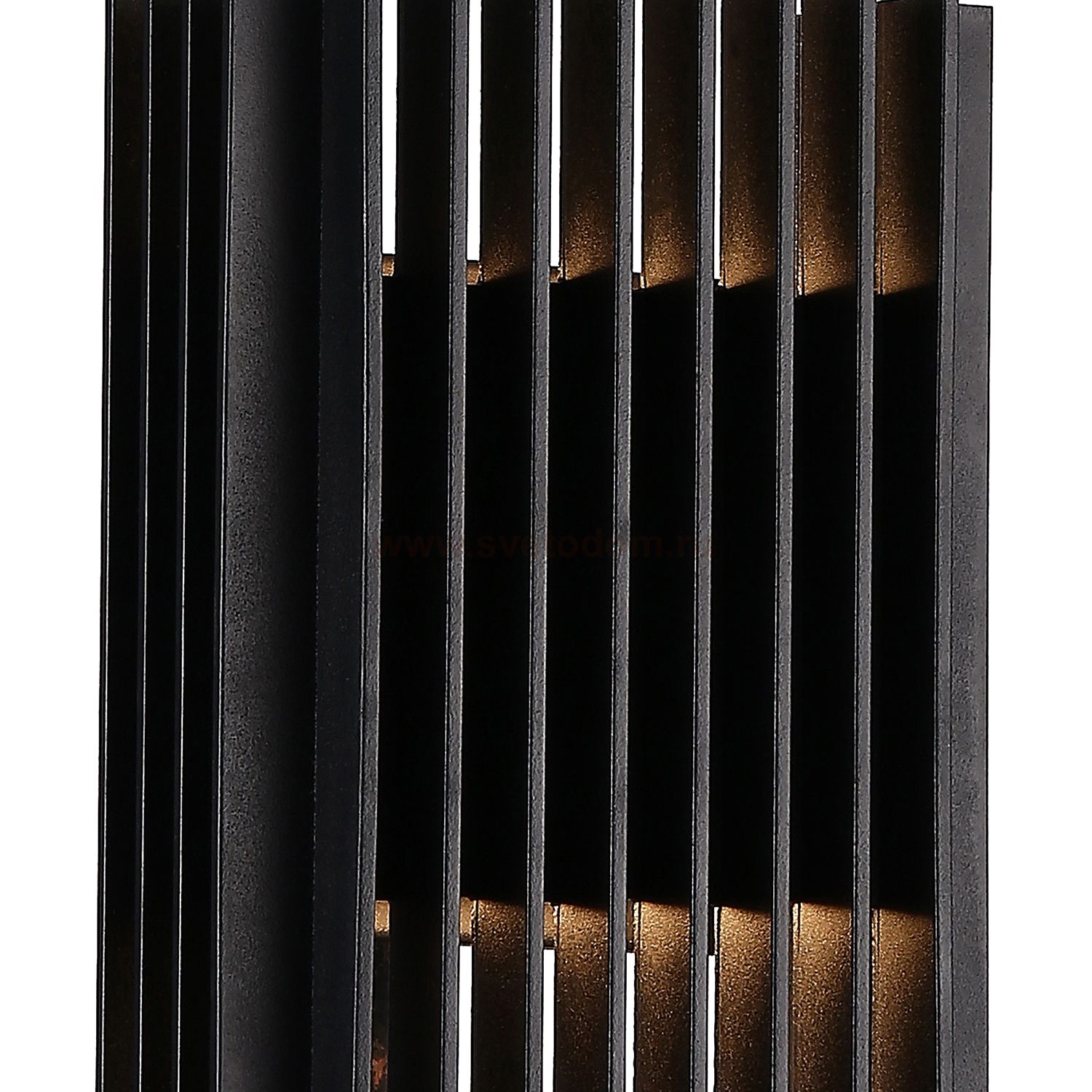 Настенный светильник, представляет собой конструкцию из широких плоских металлических пластин, прикрепленных к корпусу, выполнен в черном матовом цвет Серия