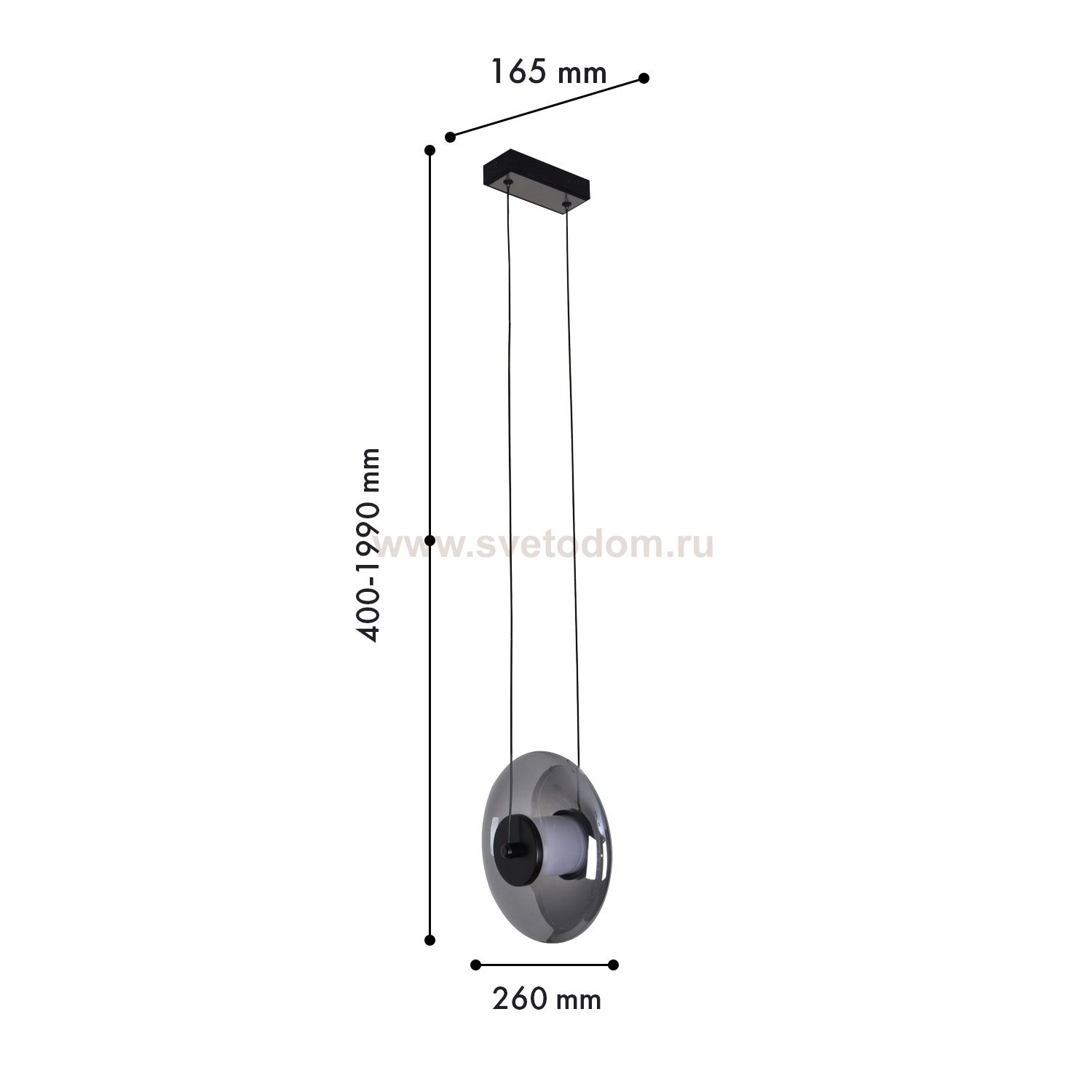 Подвес - вертикальное крепление сжатого сферического выдувного плафона, цилиндрический по форме светодиодный источник света, сочетание черного матовог Декор
