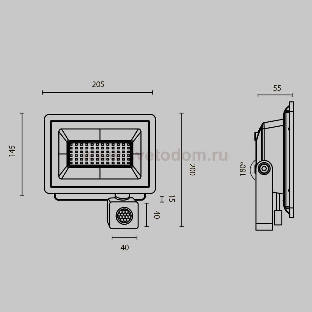 Прожекторы для освещения экстерьеров, рабочих пространств, производственных и промышленных помещений. Материал корпуса — алюминий. Цвет — чёрный. LED-источник света. Два варианта цветовой температуры - 4000К и 6500К. Пять размеров с соответствующими вариантами мощности — 10, 30, 50 Вт с датчиком движения. Модели 100 и 150 Вт без датчиков движения. Высокая степень защиты от пыли и влаги IP65. |