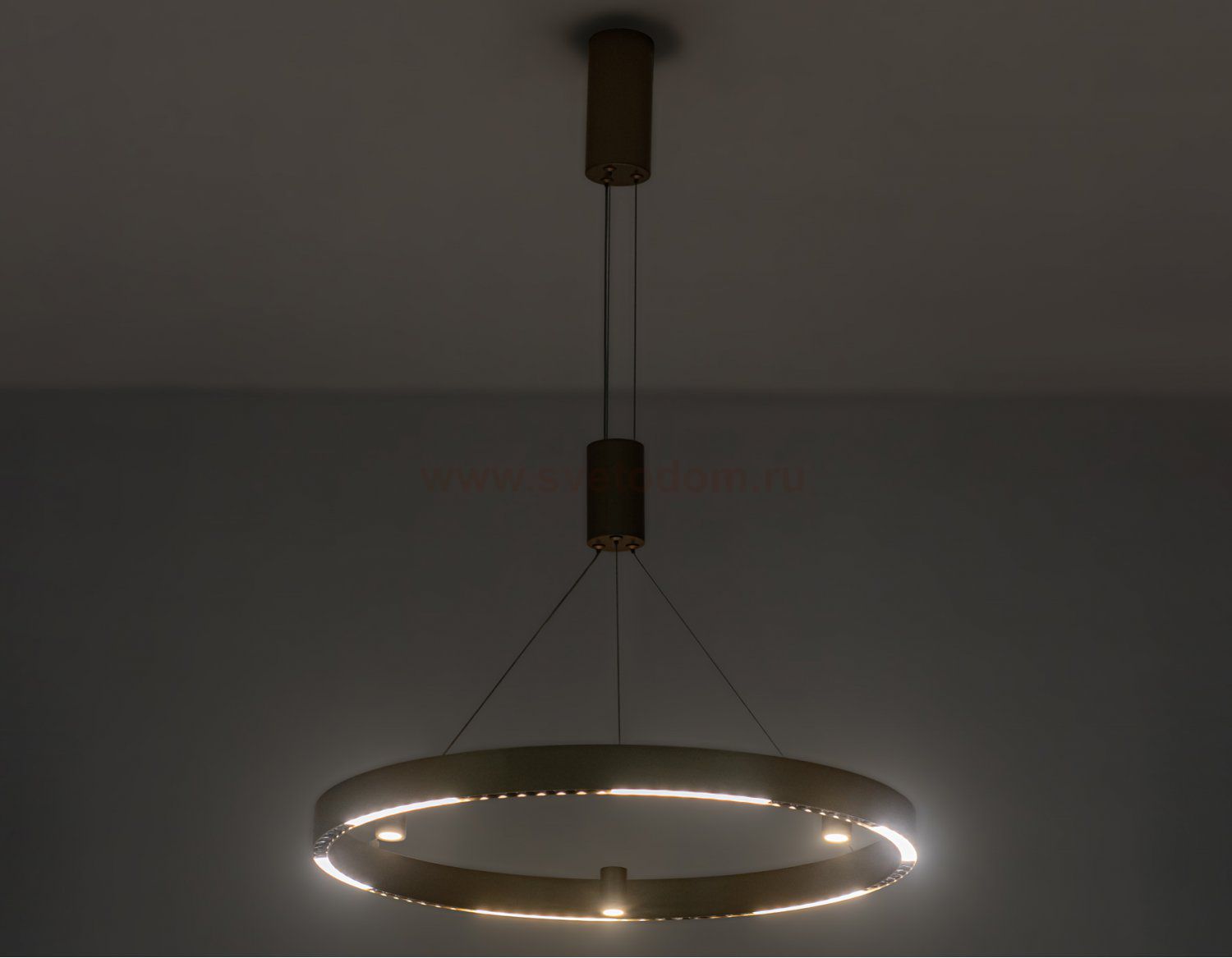 Подвесной светодиодный светильник, коллекция COMFORT. Модель FL5846 представлена в современном стиле техно. Светильник выполнен из металла в золотом цвете. Эта модель оснащена встроенными светодиодами, благодаря чему вы забудете о замене дополнительных ламп. Выбор цветовой температуры необходимо произвести на драйвере, перед установкой на потолок. Этот светильник подходит для натяжных потолков и будет прекрасным дополнением в любом помещении.