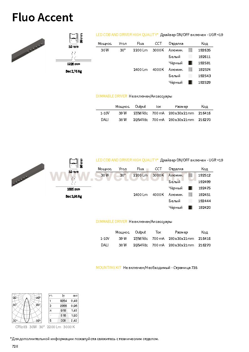 FLUO ACCENT 1800 3000K BLACK Гарантия