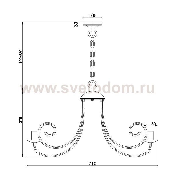 Характеризует подвесную систему светильника. Данную длину возможно изменять: дополнять или сокращать в пределах указанных данных.
