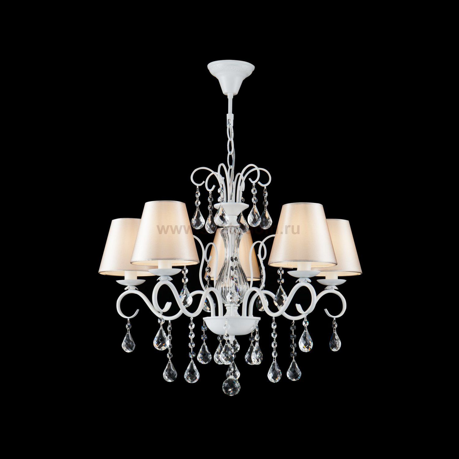Серия элегантных классических светильников. Белая металлическая арматура украшена подвесками из хрусталя. Абажуры выполнены из текстиля на ПВХ розового цвета. Срок службы