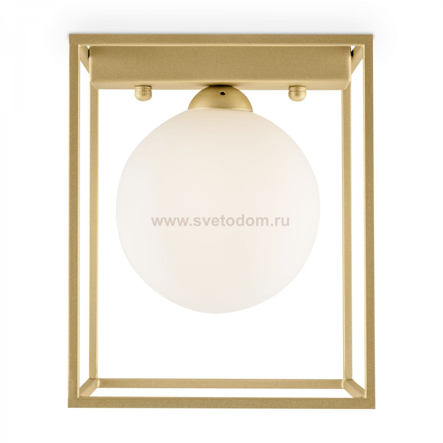 Нетривиальная игра с геометрией – сфера, заключенная в прямоугольное обрамление – яркое и весьма смелое дизайнерское решение. Стеклянные плафоны матово-белого цвета эффектно контрастируют с металлической арматурой роскошного золотого оттенка. Компактные размеры светильника позволяют использовать его даже в небольших комнатах с низкими потолками. В серии представлены люстры различной высоты на 3 и 1 плафон, а также настольная лампа. Светильник-арт-объект станет достойным украшением современных интерьеров, выполненных в различных стилевых решениях.