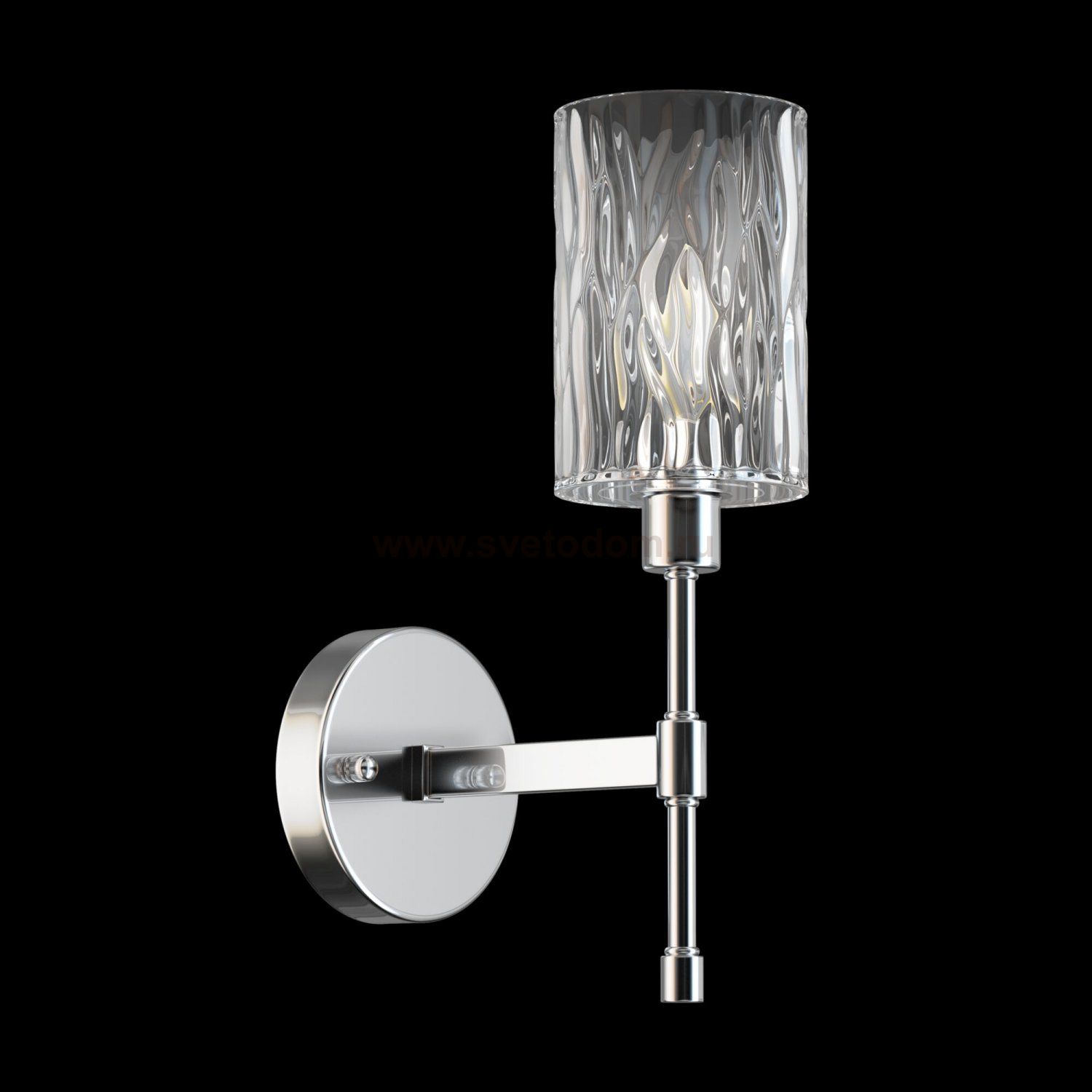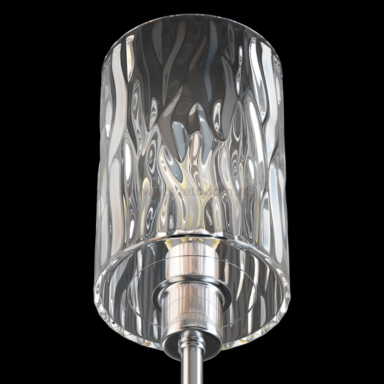 Хромированная металлическая арматура. Плафоны – фактурное прозрачное стекло. В качестве источника света используется лампа с цоколем Е14.