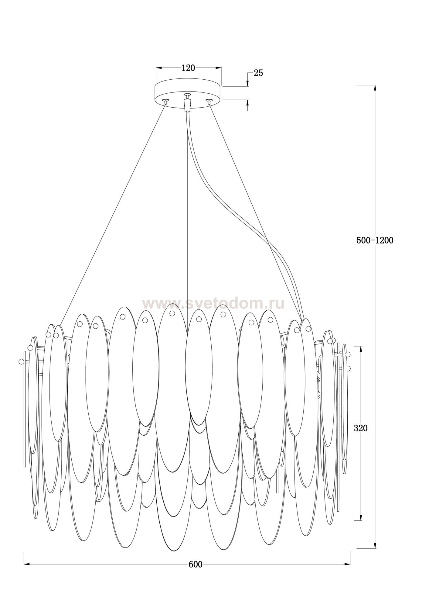 Характеризует подвесную систему светильника. Данную длину возможно изменять: дополнять или сокращать в пределах указанных данных.