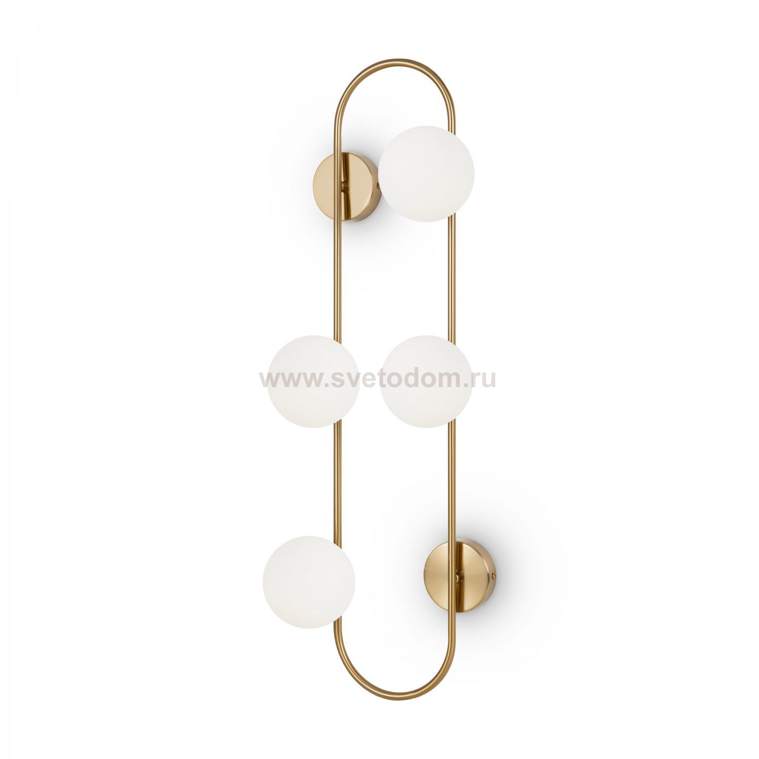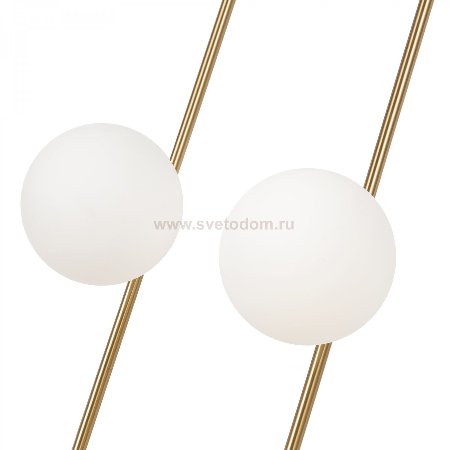 Арматура - металл, цвет - латунь. Стеклянные плафоны-сферы в двух оттенках белый матовый и дымчатый в настенно потолочной версии. Округлые и плавные линии - беспроигрышное сочетание для современных интерьеров. Настенные бра можно использовать как для общего на потолке так и для зонального настенного освещения Источник света - лампа с цоколем G9.