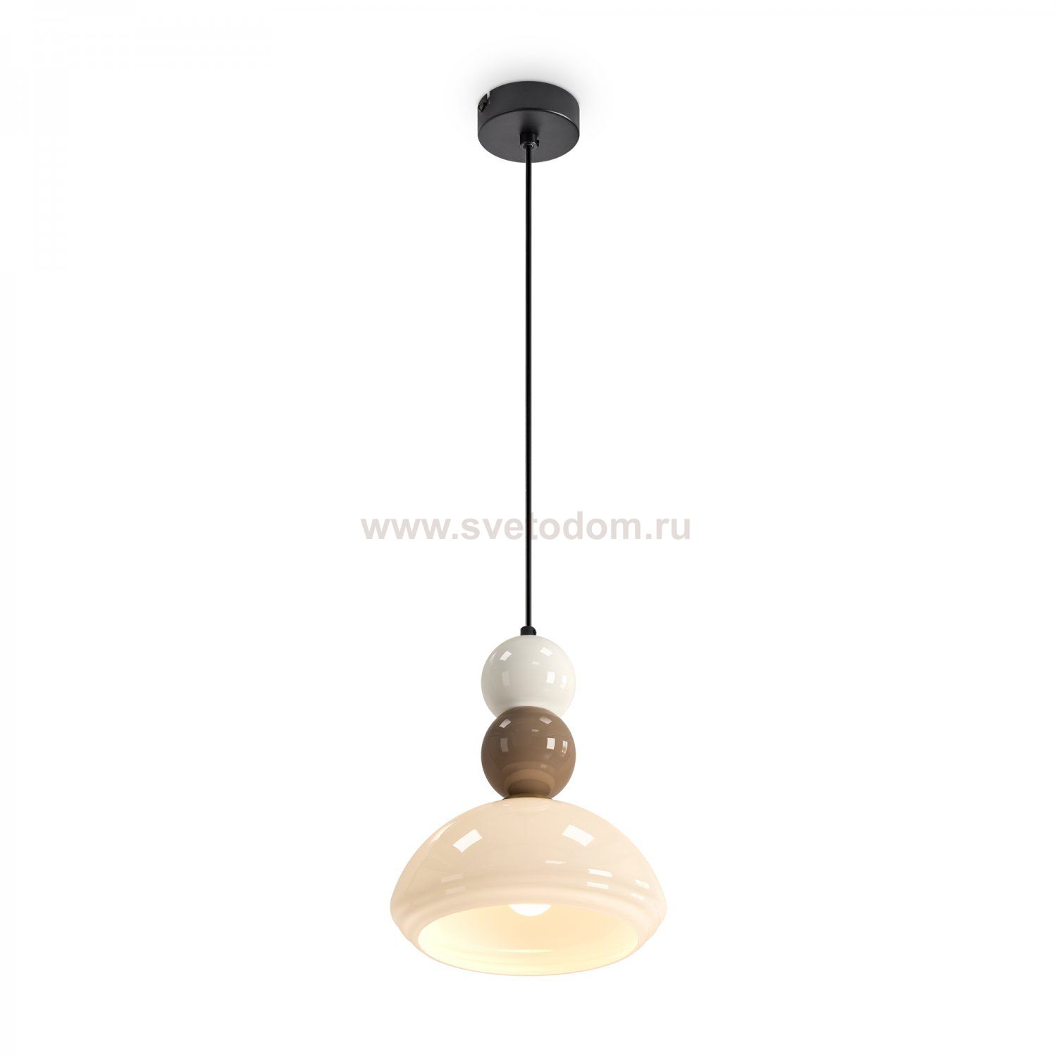 Арматура — металл. Керамический элемент и белый глянцевый стеклянный плафон в ретро-стиле. Лампа E27 (не в комплекте). Высота регулируется.