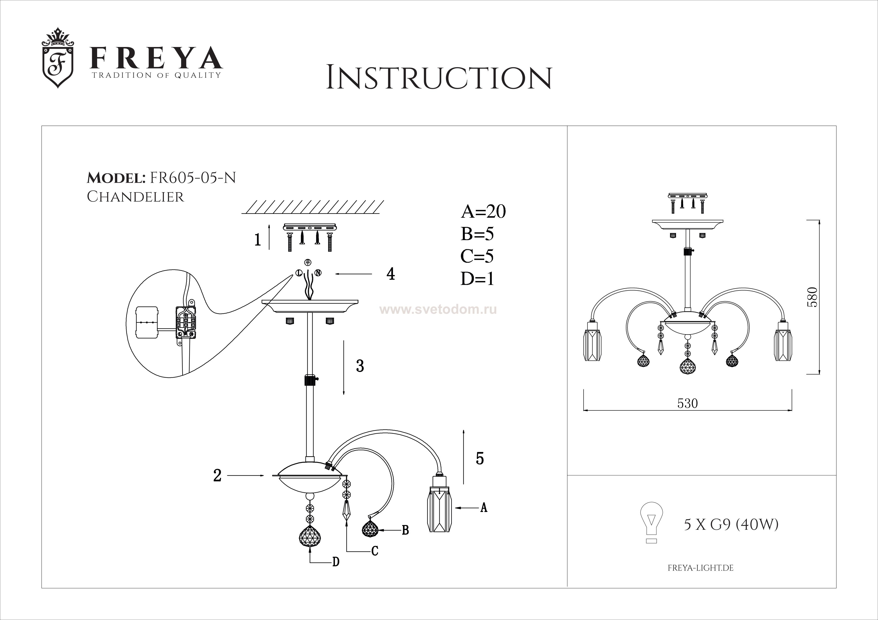 Компания «Светодом» предлагает широкий ассортимент люстр от известных производителей. Представленные в нашем каталоге товары выполнены из современных материалов и обладают отличным качеством. Благодаря широкому ассортименту Вы сможете найти у нас люстру под любой интерьер. Мы предлагаем как классические варианты, так и современные модели, отличающиеся лаконичностью и простотой форм. Стильная люстра Freya FR605-05-N станет украшением любого дома. Эта модель от известного производителя не оставит равнодушным ценителей красивых и оригинальных предметов интерьера. Люстра Freya FR605-05-N обеспечит равномерное распределение света по всей комнате. При выборе обратите внимание на характеристики, позволяющие приобрести наиболее подходящую модель. Купить понравившуюся люстру по доступной цене Вы можете в интернет-магазине «Светодом».