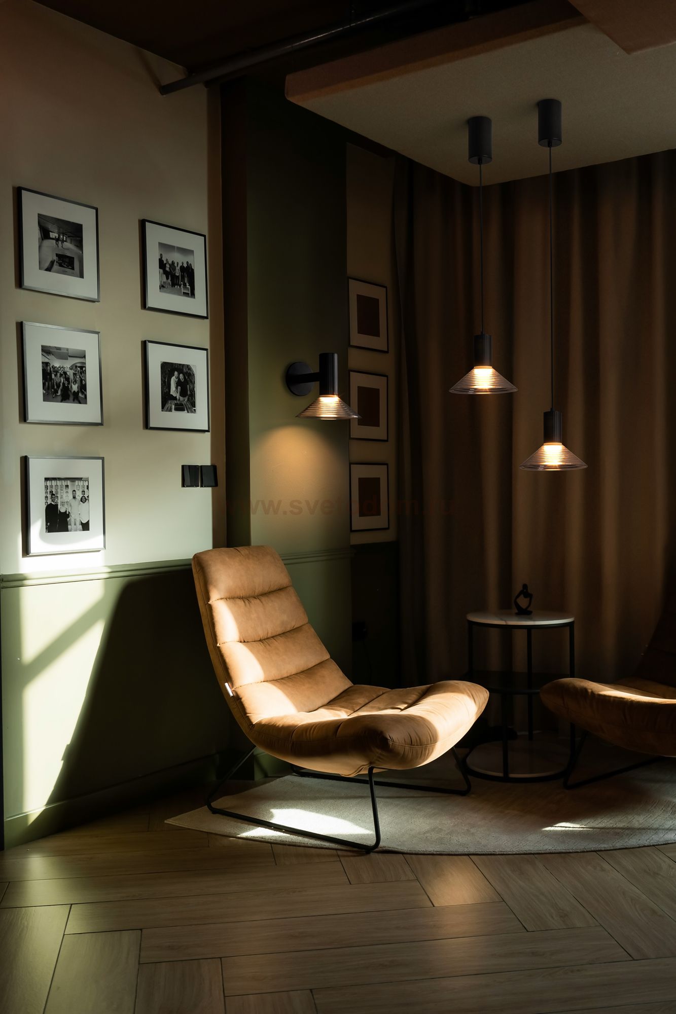 Гальванизированные рельефные плафоны в минималистичном стиле, выполнены из стекла с дымчатым эффектом. Арматура — граненый металл черного цвета. Оснащены LED источниками света мощностью 6 Вт с цветовой температурой 2800K, создающими теплое, уютное освещение. Серия включает бра и одинарный подвесной светильник. Универсальны для современных интерьеров, стремящихся к простоте и функциональности.