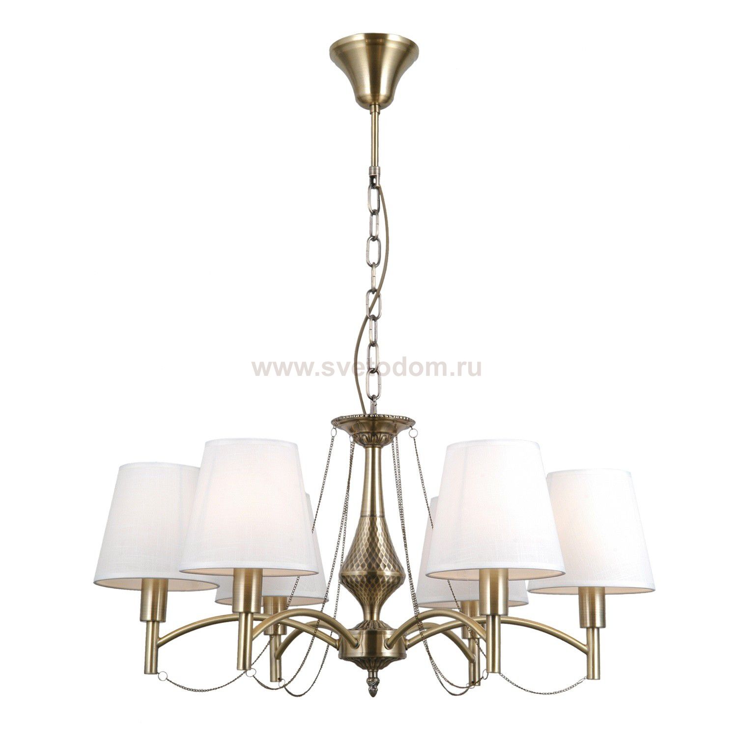 Люстра классическая G11096/6AB WT от бренда Gerhort. Каркас выполнен из материала металл, цвет античная бронза. Плафоны (светорассеиватели) выполнены из материала текстиль, цвет белый. Цоколь E14 рассчитан на лампы максимальной мощности до 40 Вт, а максимальная площадь освещения составит до 13 м?.