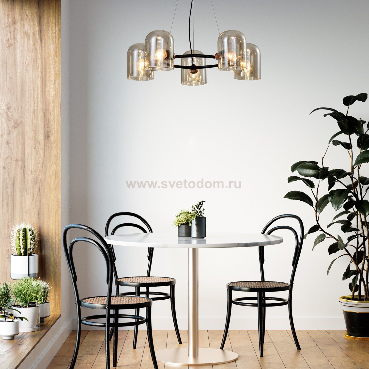 Люстра в стиле модерн G31001/5BK AMB от бренда Gerhort. Каркас выполнен из материала металл, цвет черный. Плафоны (светорассеиватели) выполнены из материала стекло, цвет янтарный. Цоколь E14 рассчитан на лампы максимальной мощности до 40 Вт, а максимальная площадь освещения составит до 11 м?.