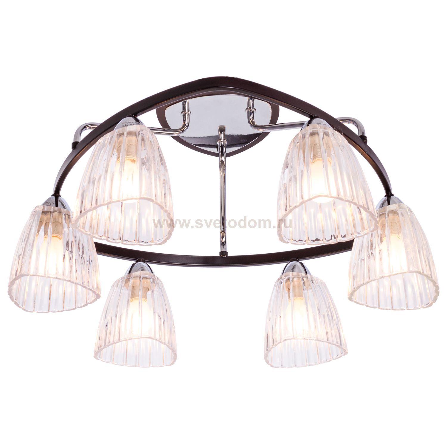 При покупке советуем обратить внимание на технические характеристики модели Потолочный светильник 10734A/6CR+WENGUE CL от бренда Gerhort. Каркас выполнен из материала металл, цвет хром, венге. Плафоны (светорассеиватели) выполнены из материала стекло, цвет прозрачный. Цоколь E14 рассчитан на лампы максимальной мощности до 60 Вт, а максимальная площадь освещения составит до 13 м?.