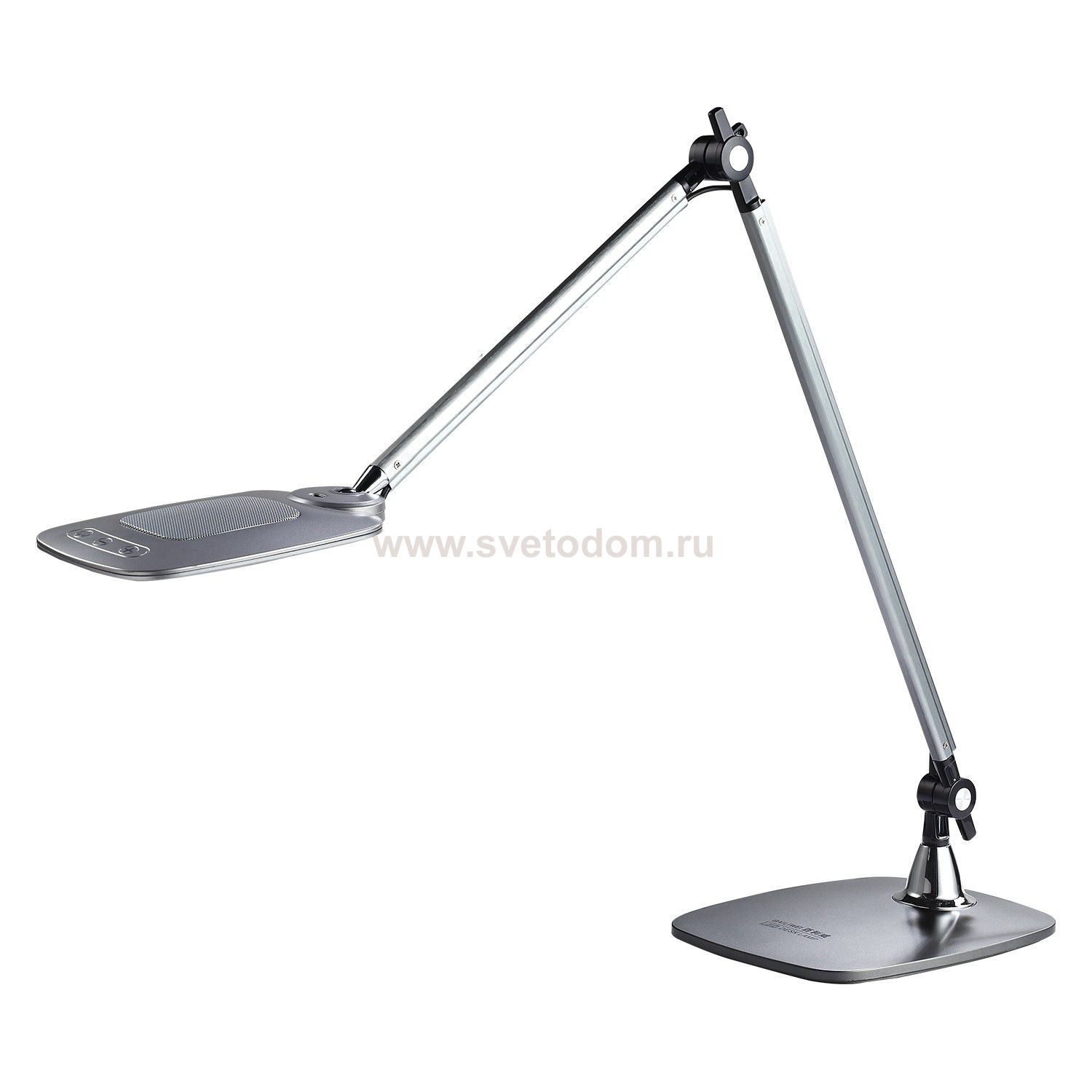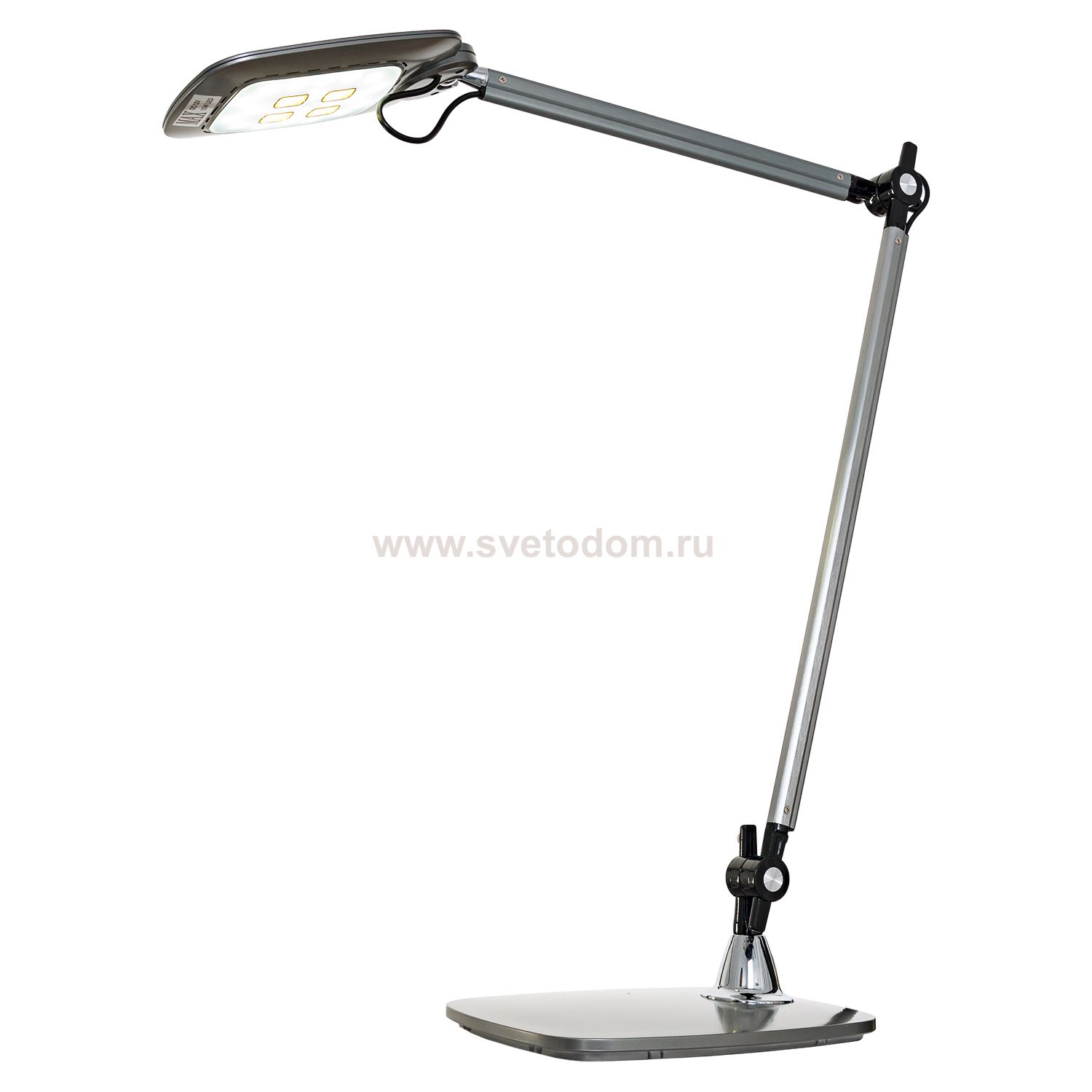 Настольная светодиодная лампа BL1216CL SILVER от бренда Gerhort. Каркас выполнен из материалов металл и пластик, цвет серебро. Плафон (светорассеиватель) выполнен из материалов металл и пластик, цвет серебро. Встроенные LED модули на 10 Вт осветят до 1 м?. Есть регулировка цветовой температуры и яркости с помощью выключателя.