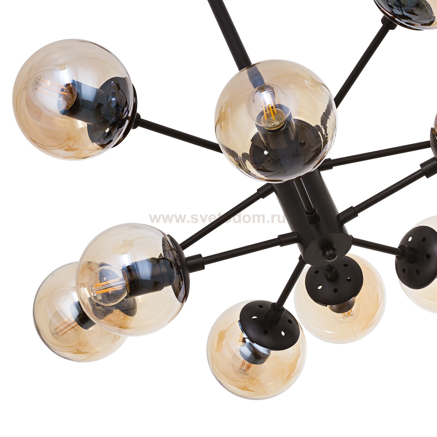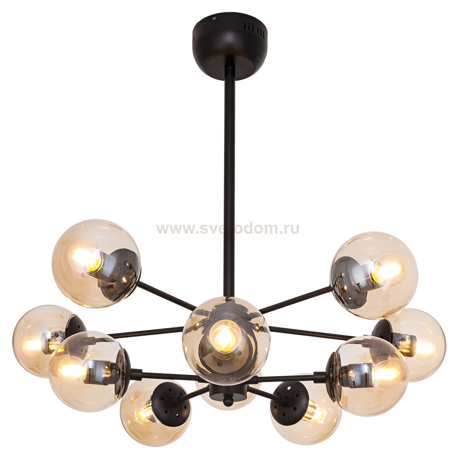Потолочная люстра G21013/10BK AMB от бренда Gerhort. Каркас выполнен из материала металл, цвет черный. Плафоны (светорассеиватели) выполнены из материала стекло, цвет янтарный. Цоколь E27 рассчитан на лампы максимальной мощности до 8 Вт, а максимальная площадь освещения составит до 10 м?.