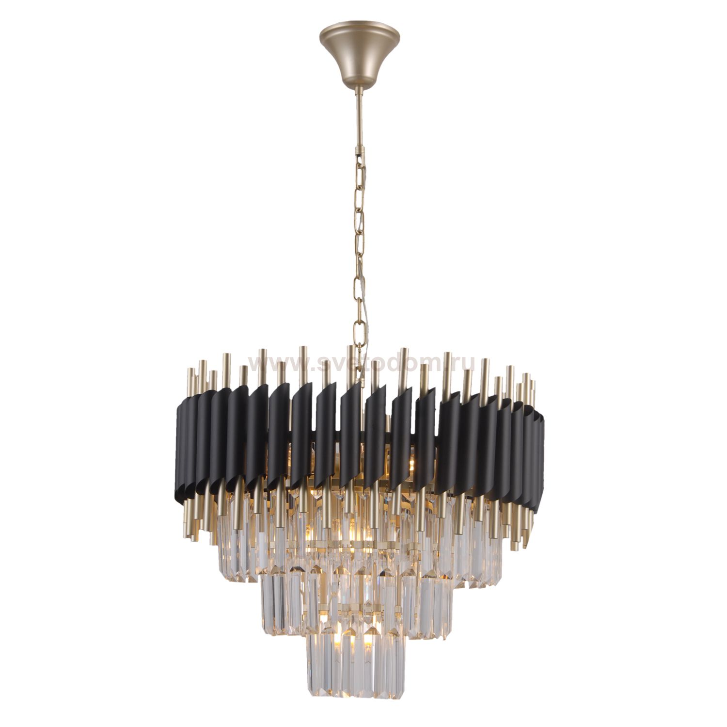 Подвесная люстра G21033/10CPGD+MBK CL от бренда Gerhort. Каркас выполнен из материалов металл и стекло; цвета: золото шампань, черный и прозрачный. Цоколь E14 рассчитан на лампы максимальной мощности до 40 Вт, а максимальная площадь освещения составит до 22 м?.