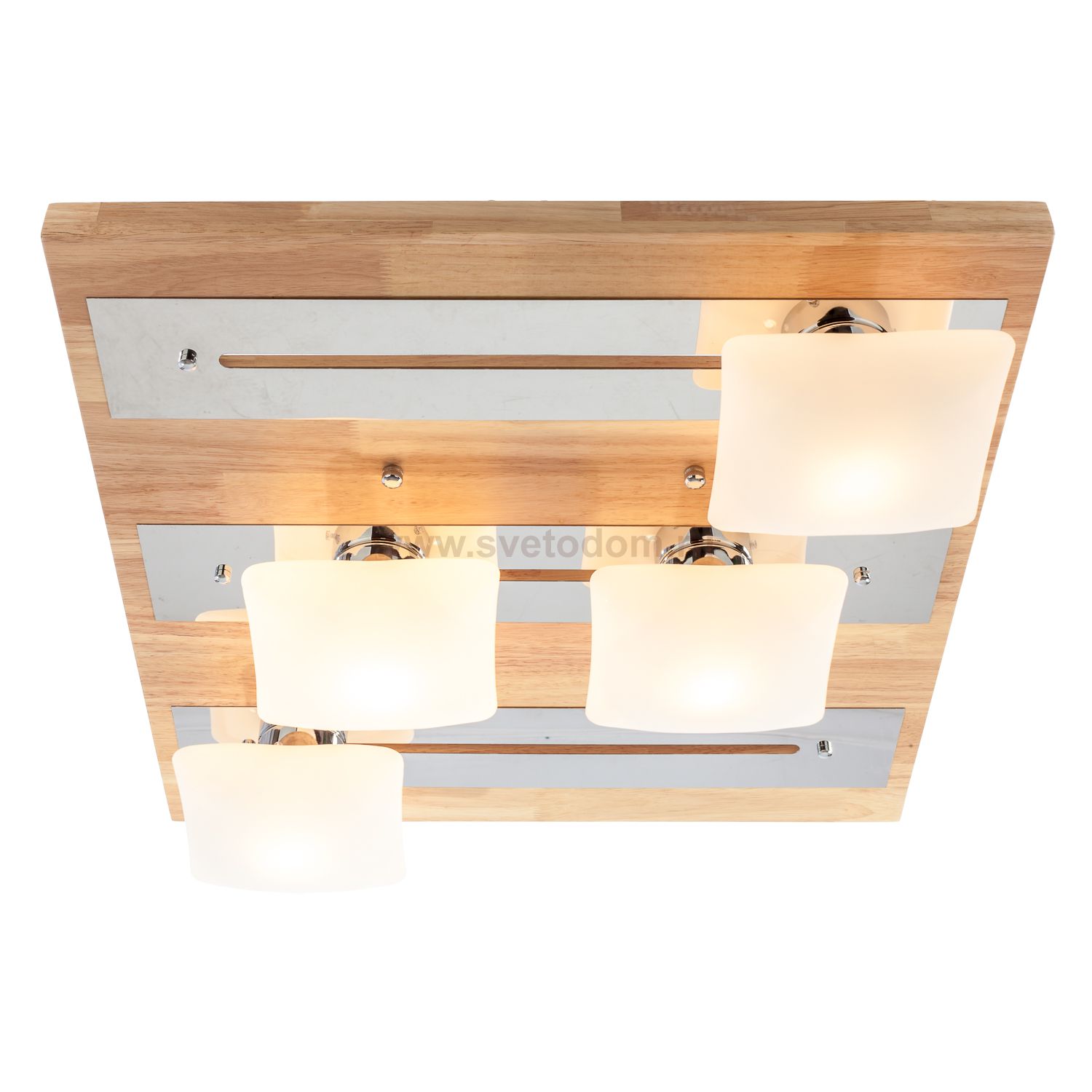 Потолочный светильник G31023/4WOOD WT от бренда Gerhort. Каркас выполнен из материалов дерево и металл; цвета: светлое дерево и хром. Плафоны (светорассеиватели) выполнены из материала стекло, цвет белый. Цоколь E27 рассчитан на лампы максимальной мощности до 40 Вт, а максимальная площадь освещения составит до 9 м?.